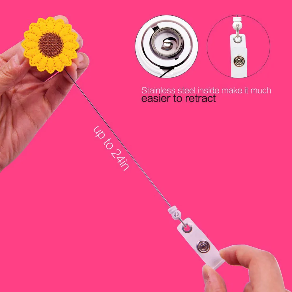 Подсолнух бейдж держатель катушки Точная отстрочка ремень Телескопический втягивающий зажим