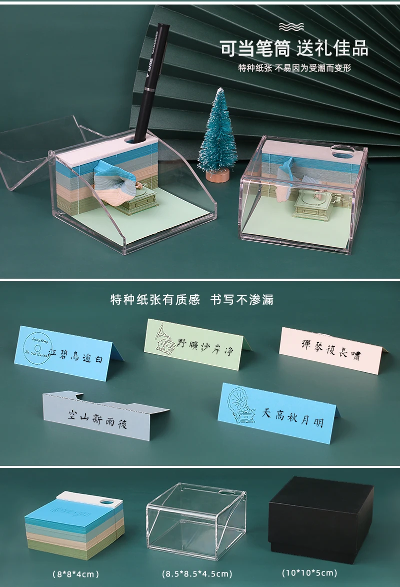 Материал: бумага Стиль: 3d архитектура Размер: 80*80*45 мм Страница: 150 листов Посылка включает в себя: 1x блокнот с акриловой коробкой Примечание: светильник и различные дисплеи могут привести к тому, что цвет товара на картинке немного отличается от реального. Допускается погрешность в измерениях +/- 1-3 см.