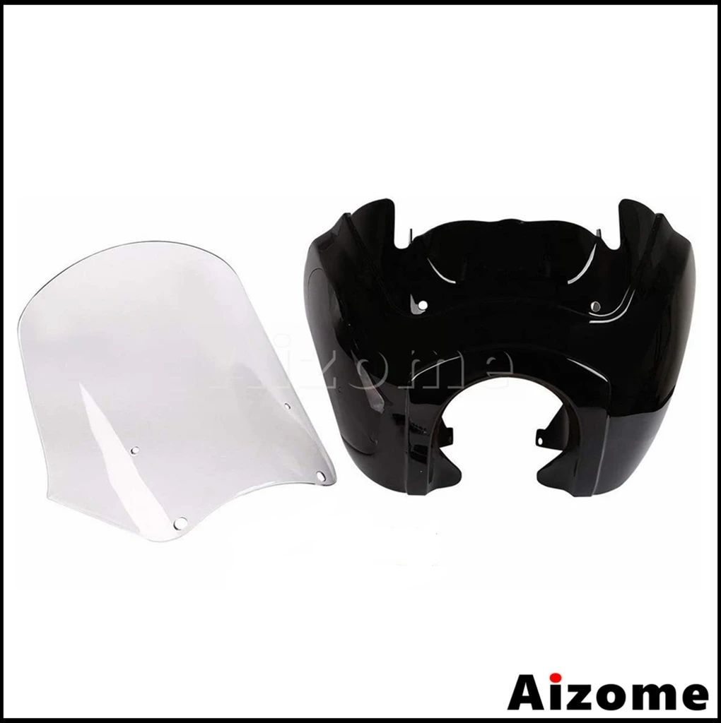 Передний обтекатель с 15 "ветровым стеклом, который регулируется и имеет чистую аэродинамическую губу для воздушного потока, который идет над вашей головой во время езды... Неокрашенный. Включает кронштейны на задней части для крепления.