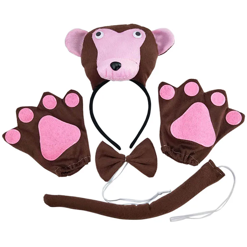 Детская милая обезьянка Тигр Панда свинка коровьи уши головная повязка животные Косплей Костюм ★Материал: ткань; Подкладка: хлопок PP ★Костюмы включают в себя четыре предмета: 1 головная повязка, 1 хвост и 1 галстук, 1 пара перчаток ★Цвет: коричневая обезьяна, тигр, желтая корова, розовый кролик, белая свинья, черная панда ★Идеальный подарок для детей, подростков, лучший костюм для животных на Рождество, Хэллоуин, групповое шоу, вечеринки. ★Из-за различных дисплеев и светильник, изображение и реальный цвет будут иметь разницу в 2-15%.