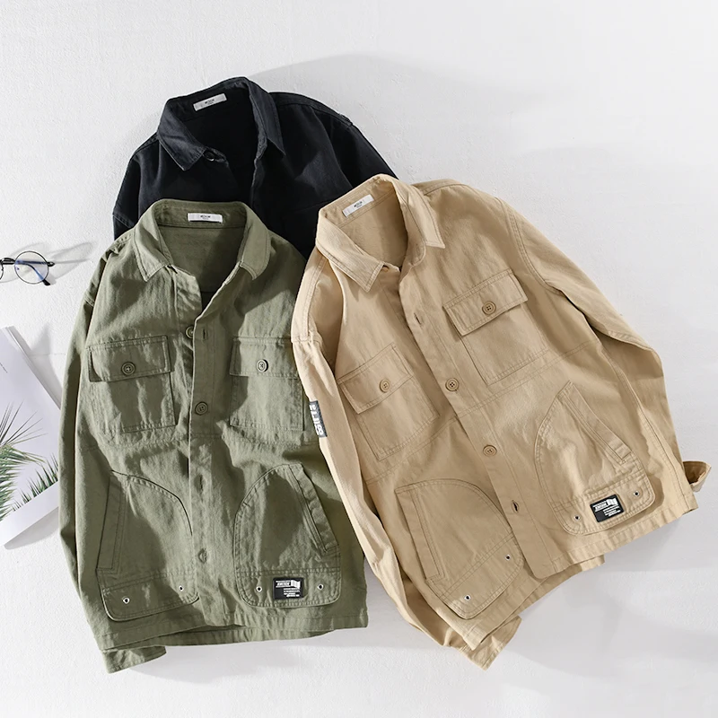 Мужская однотонная куртка из чистого хлопка, Повседневная Красивая куртка на осень, новый дизайн
