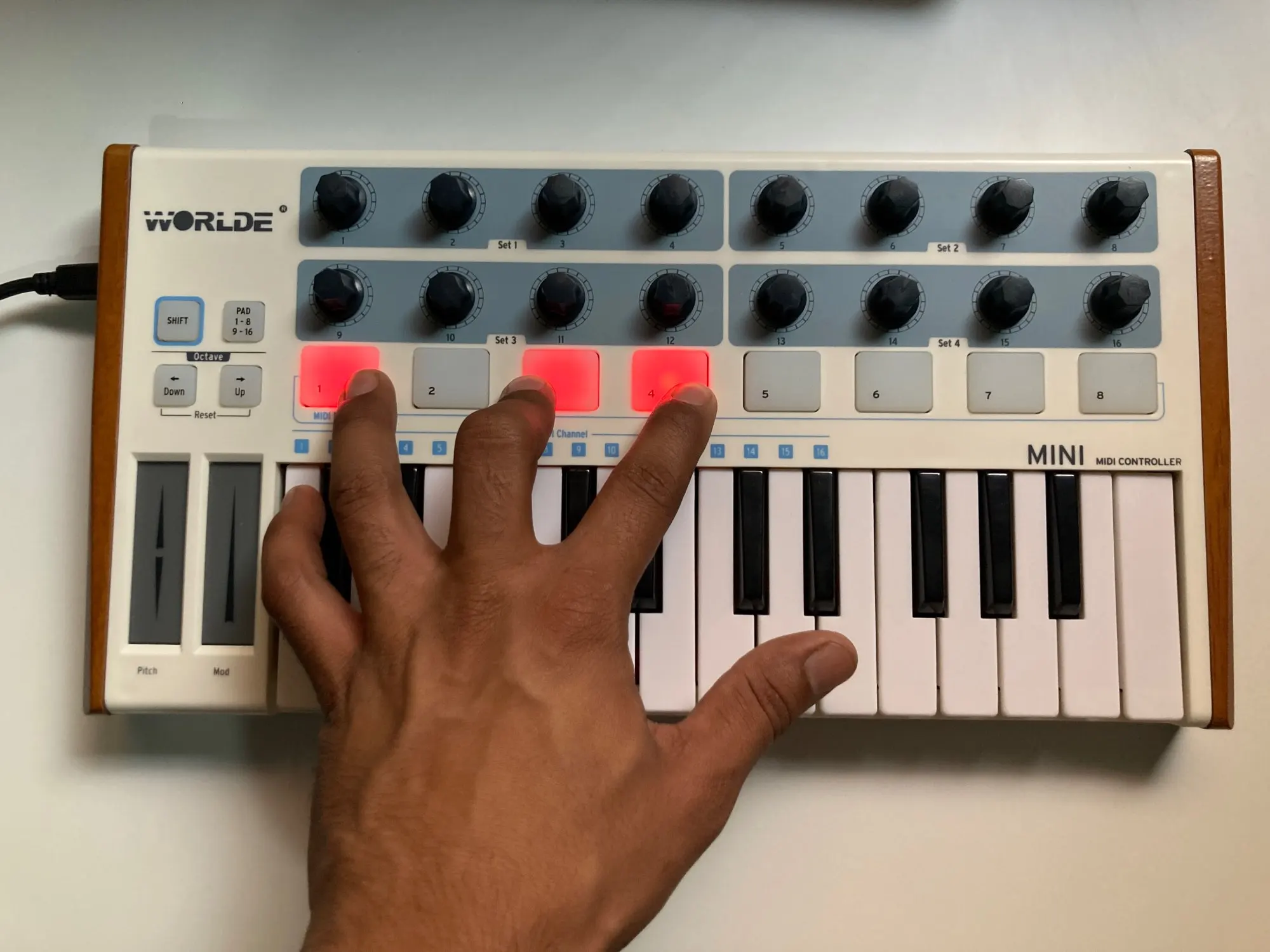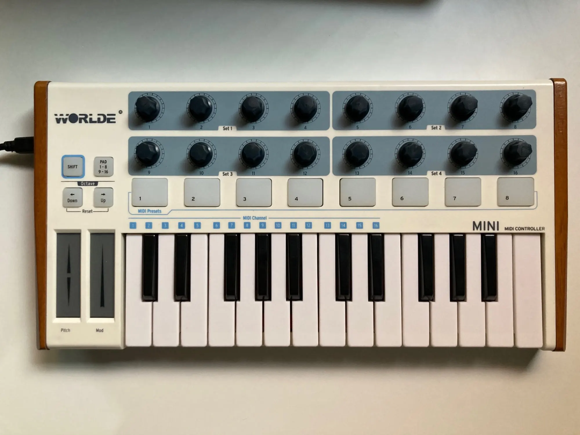 16 pads(two banks of each 8 pads/buttons).