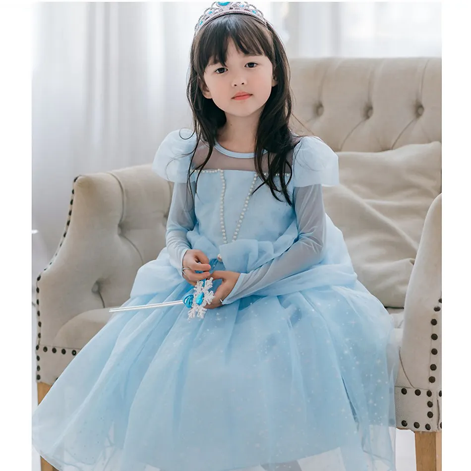 Название: VOGUEON/платье Эльзы для девочек Роскошные платья принцессы с длинными рукавами костюм для косплея на Хэллоуин детское синее Розовое Свадебное бальное платье