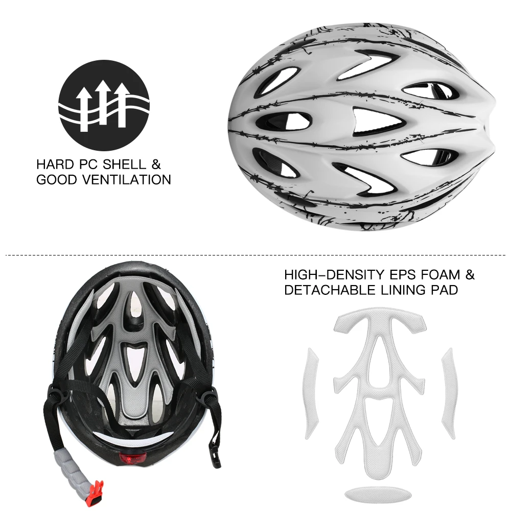 Good Ventilation: 18 big air vents help increase airflow to keep your head cool while reducing the weight of the helmet and wind friction to seek for faster riding speed.