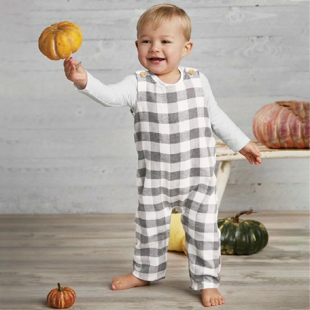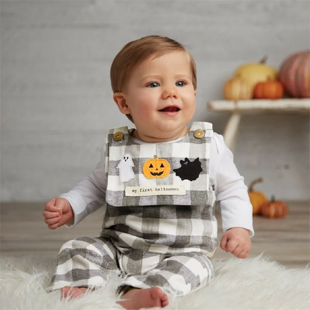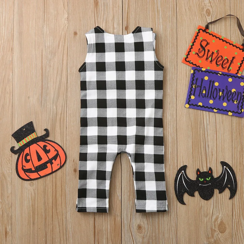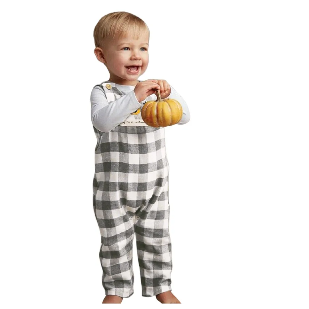 Комбинезон в клетку с принтом тыквы для маленьких мальчиков и девочек на Хэллоуин, комбинезон + комбинезон, комплект одежды