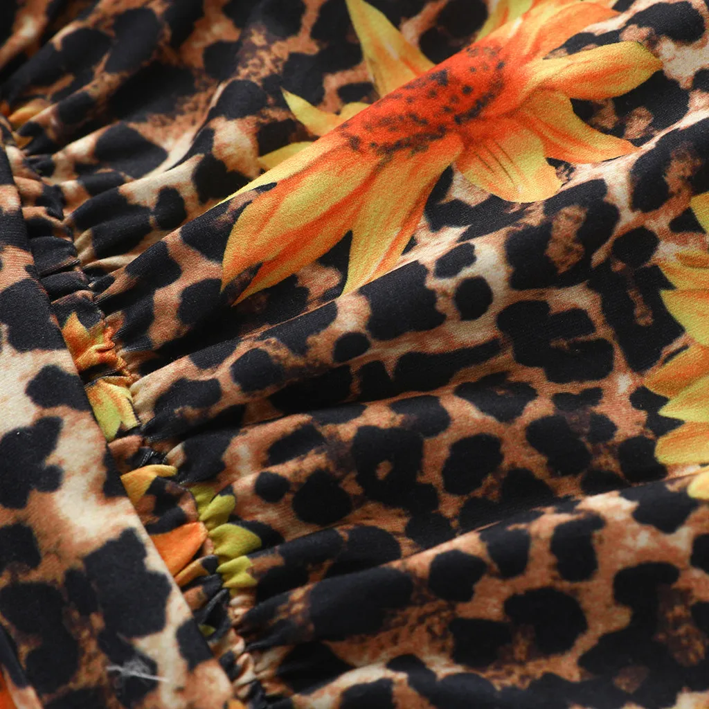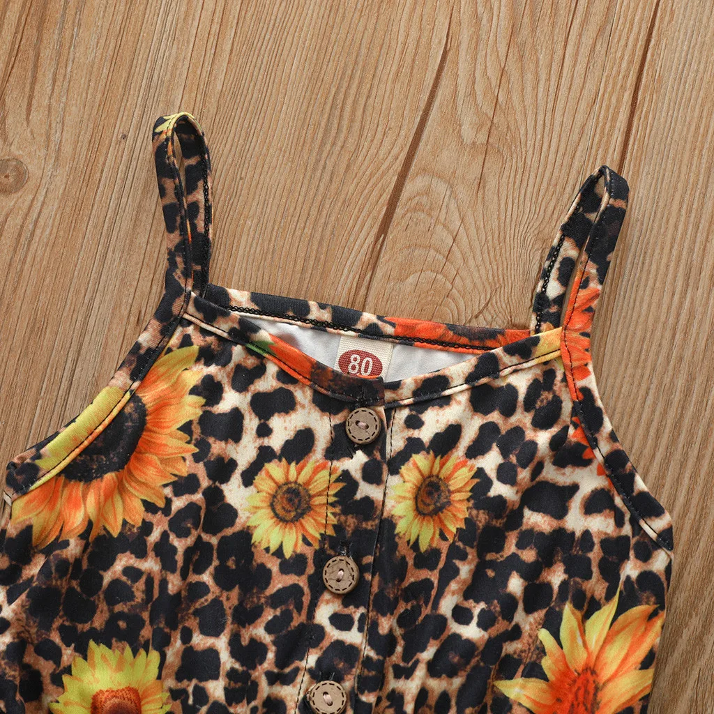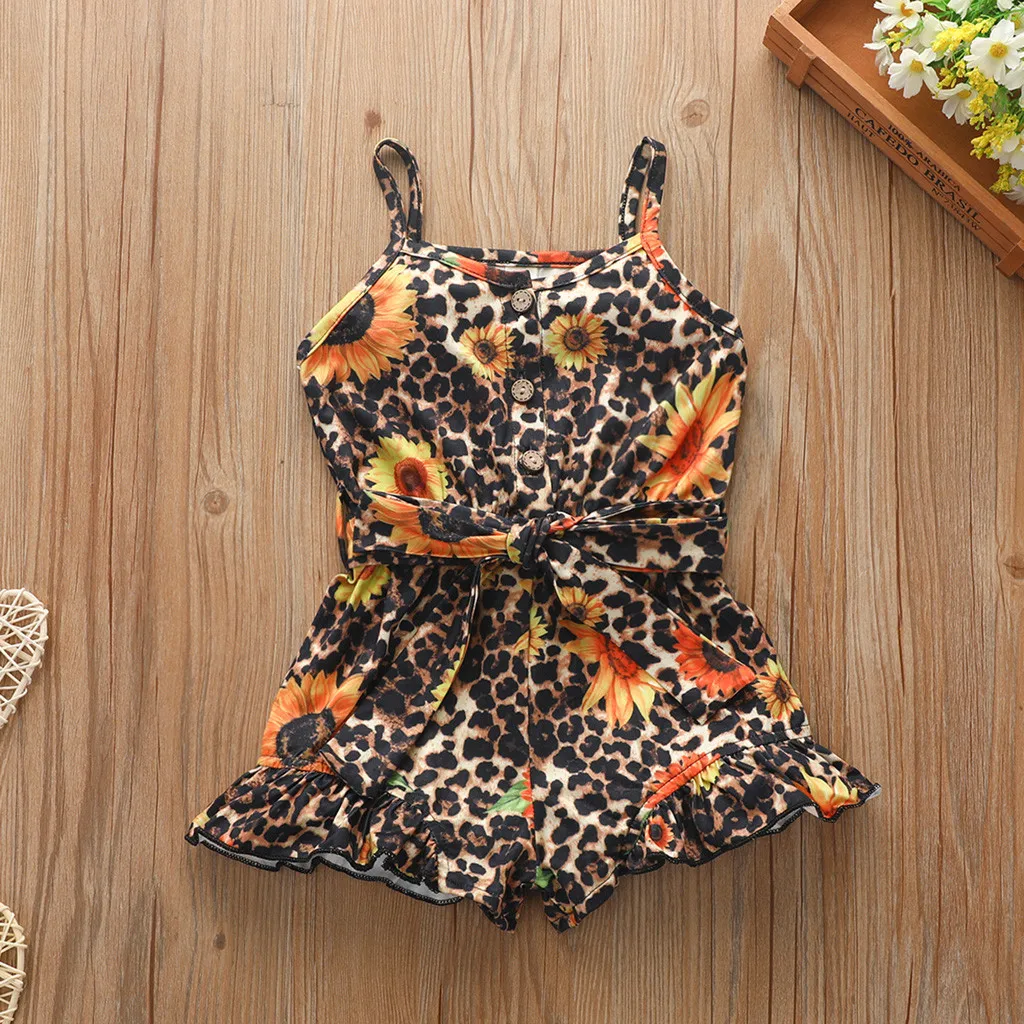 Комбинезон без рукавов с леопардовым принтом и цветочным принтом для маленьких девочек