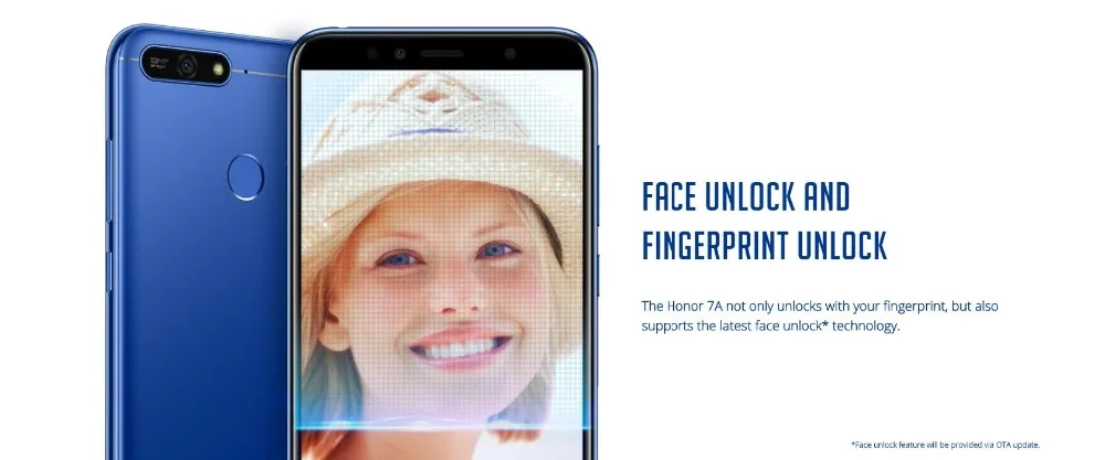 Honor 7A не только разблокирует ваш отпечаток пальца, но и поддерживает новейшую технологию разблокировки лица *.