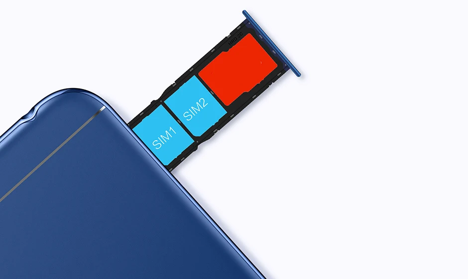 Honor 7A оснащен двумя слотами для SIM + SD-карт, что позволяет использовать одну для звонков, а другую для передачи данных. Вы также можете вставить карту microSD объемом до 256 ГБ для хранения фотографий и данных.
