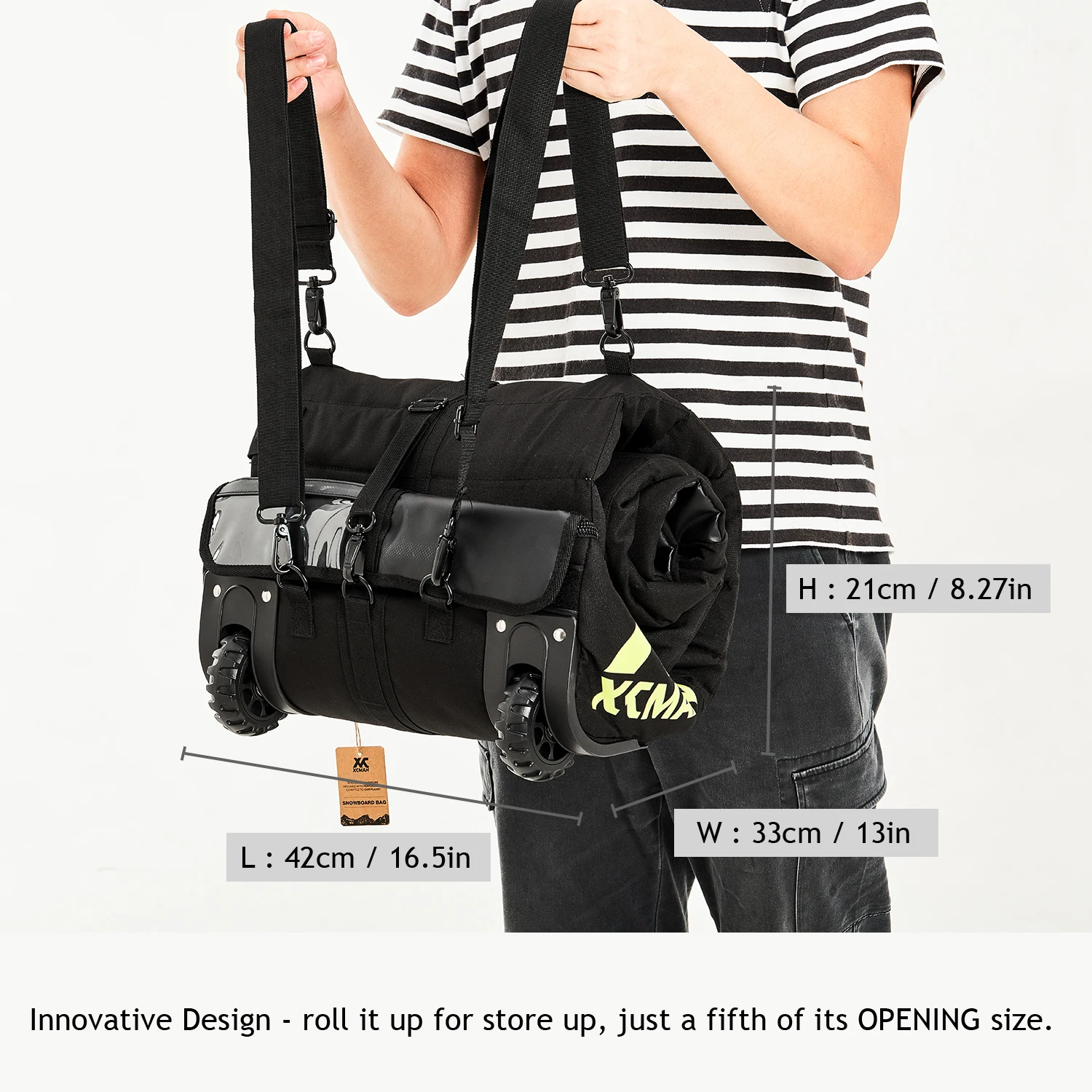 XCMAN Padded Snowboard Bag with Wheels And LOCK,Travel Bag with Storage Compartments, Reinforced Double Padding Perfect for Road Trips and Air Plane Travel, Adjustable Lenght 145cm to 190 cm,Black