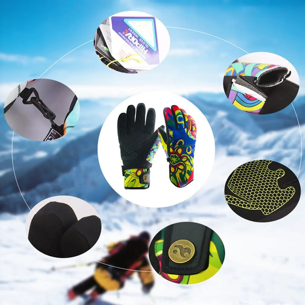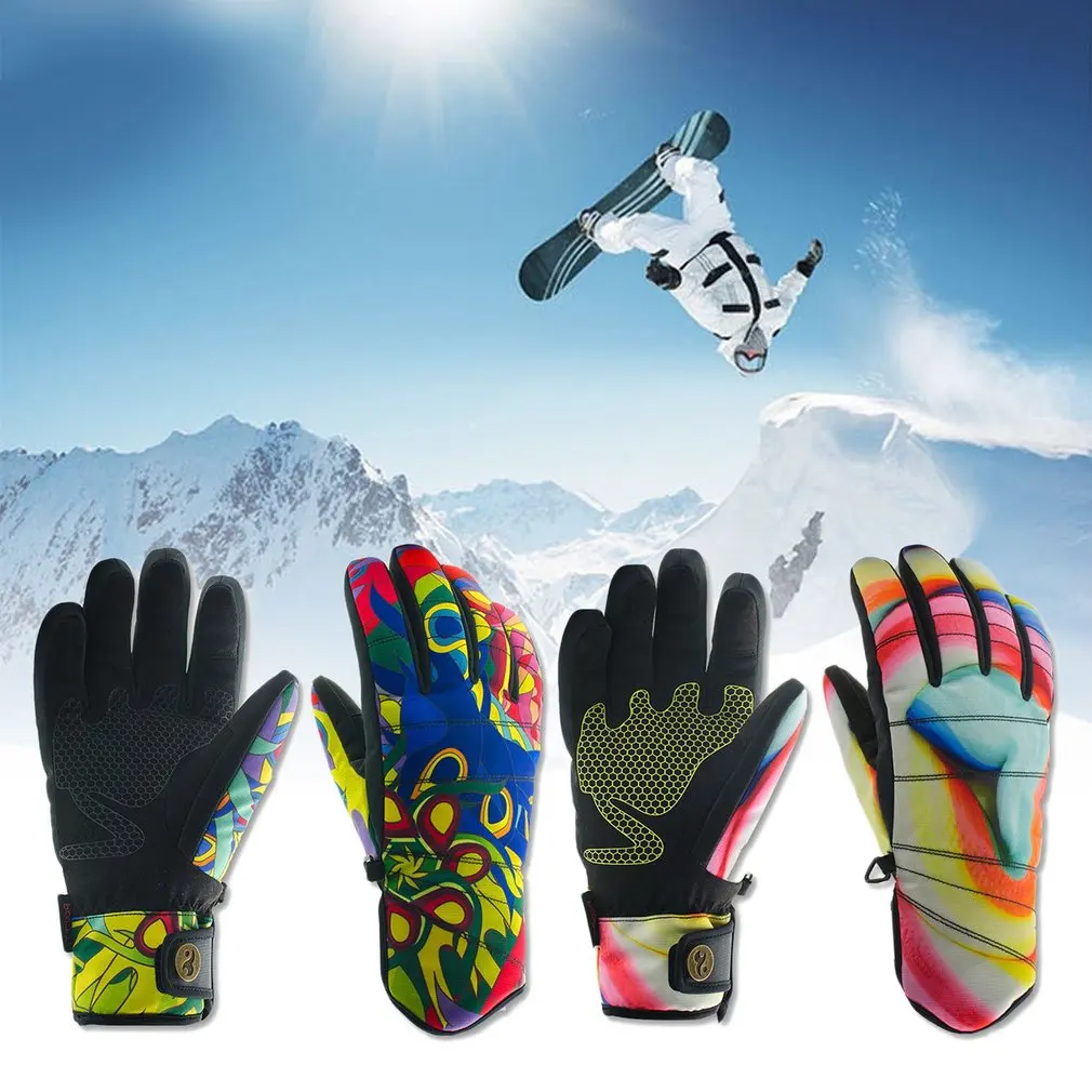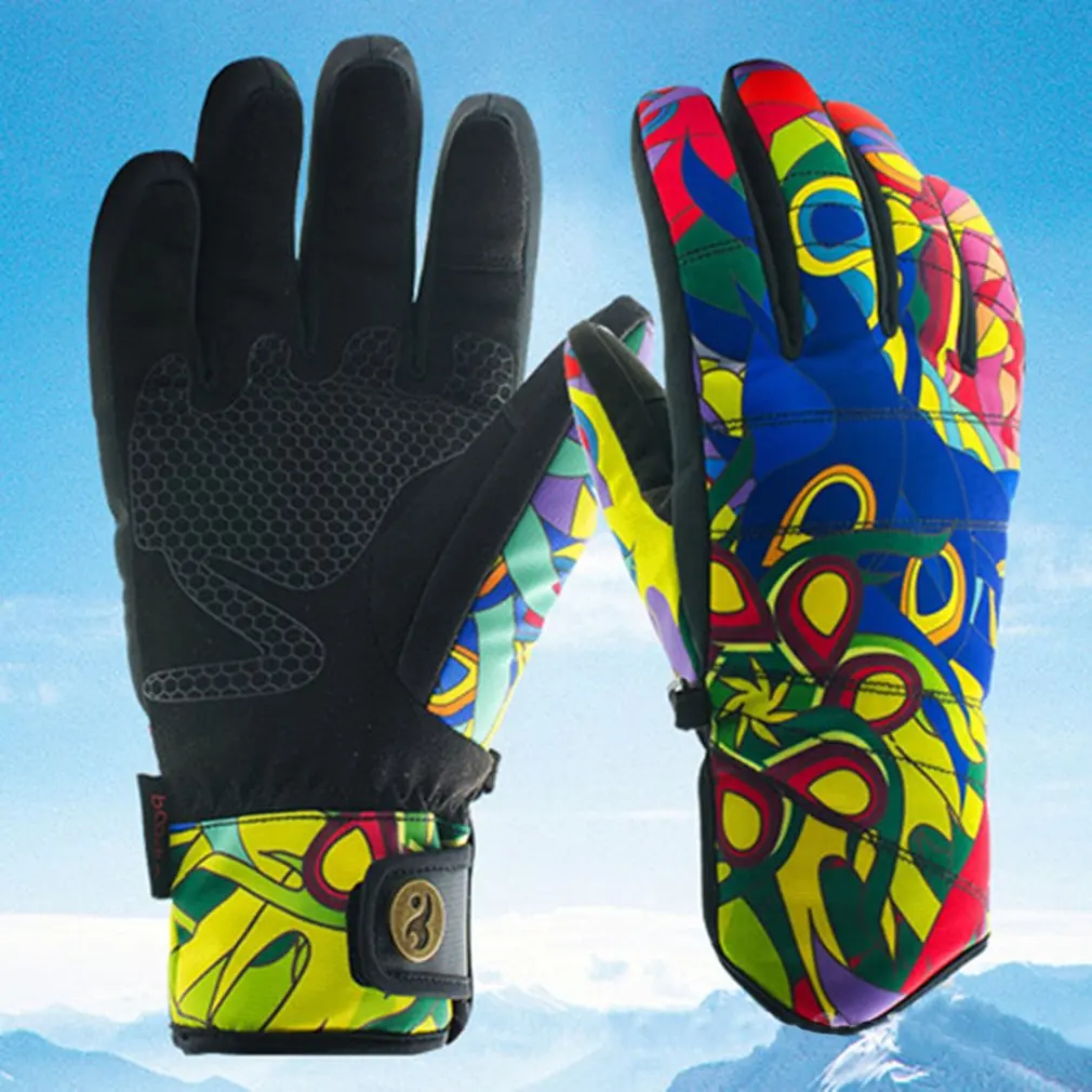 Женские лыжные перчатки, стильный принт, водонепроницаемые, ветрозащитные, Нескользящие, гибкие перчатки для катания на снегу, зимние теплые перчаткиОсобенности: