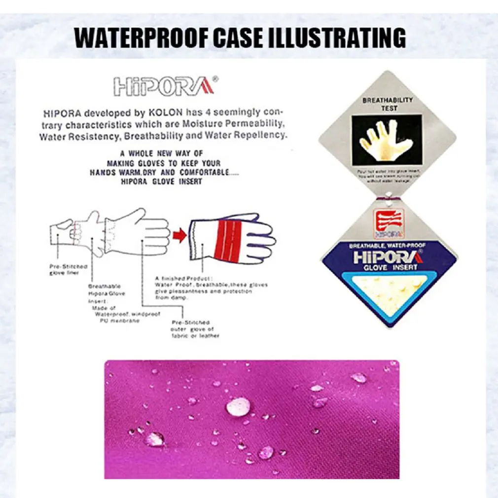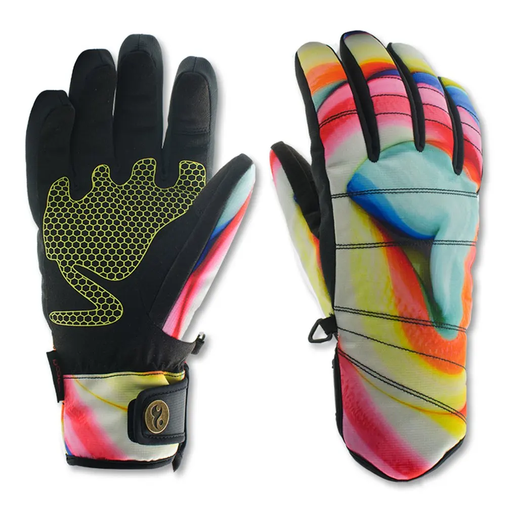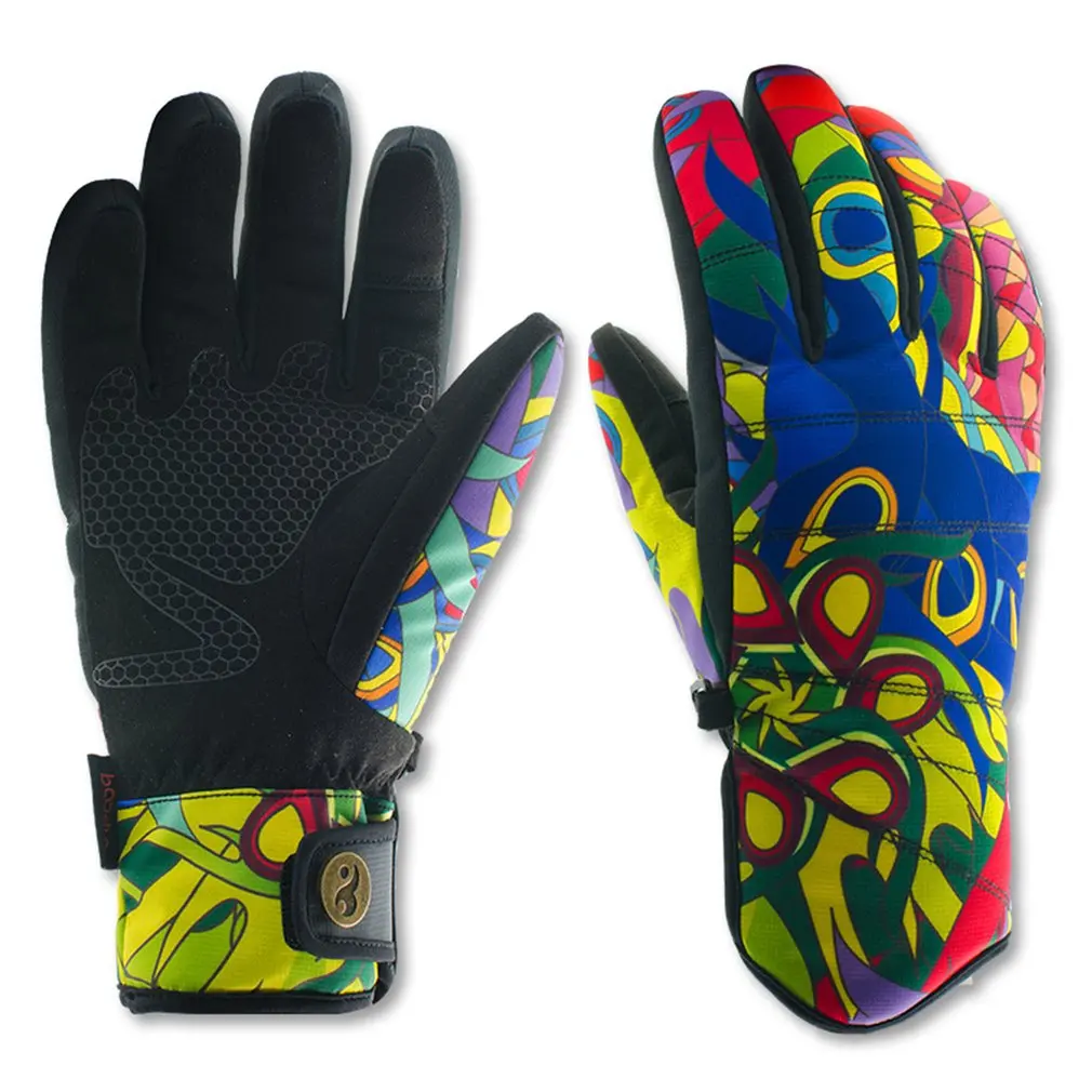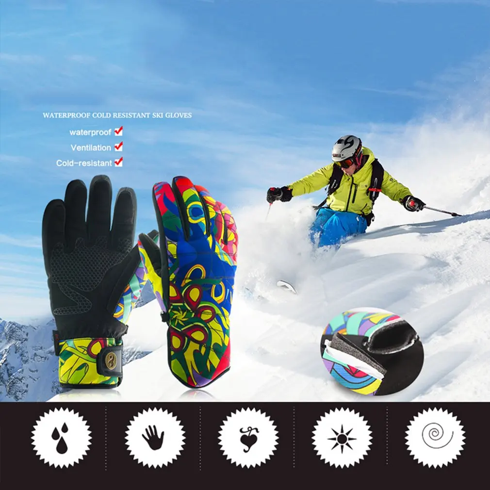 Женские лыжные перчатки, стильный принт, водонепроницаемые, ветрозащитные, Нескользящие, гибкие перчатки для катания на снегу, зимние теплые перчаткиОсобенности: