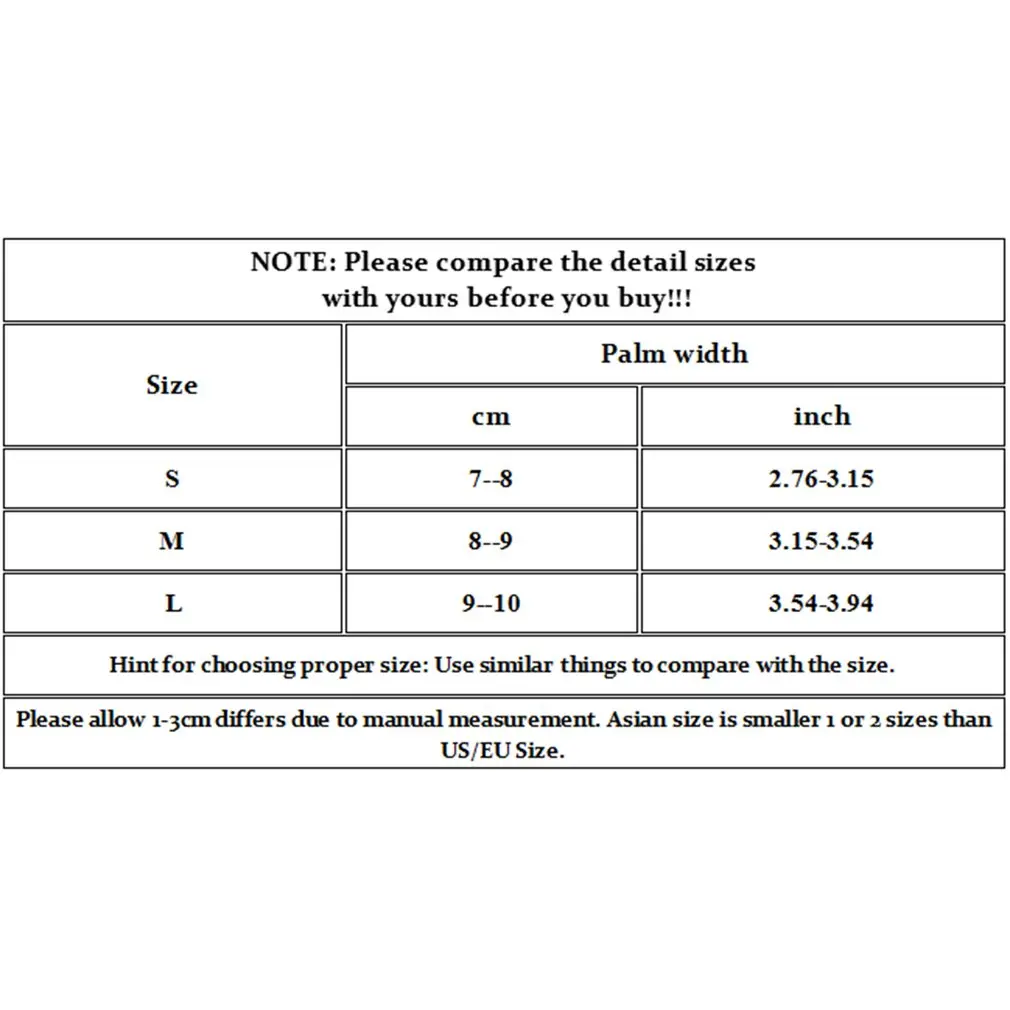 Ширина ладони: 7-8 см, 8-9 см, 9-10 см