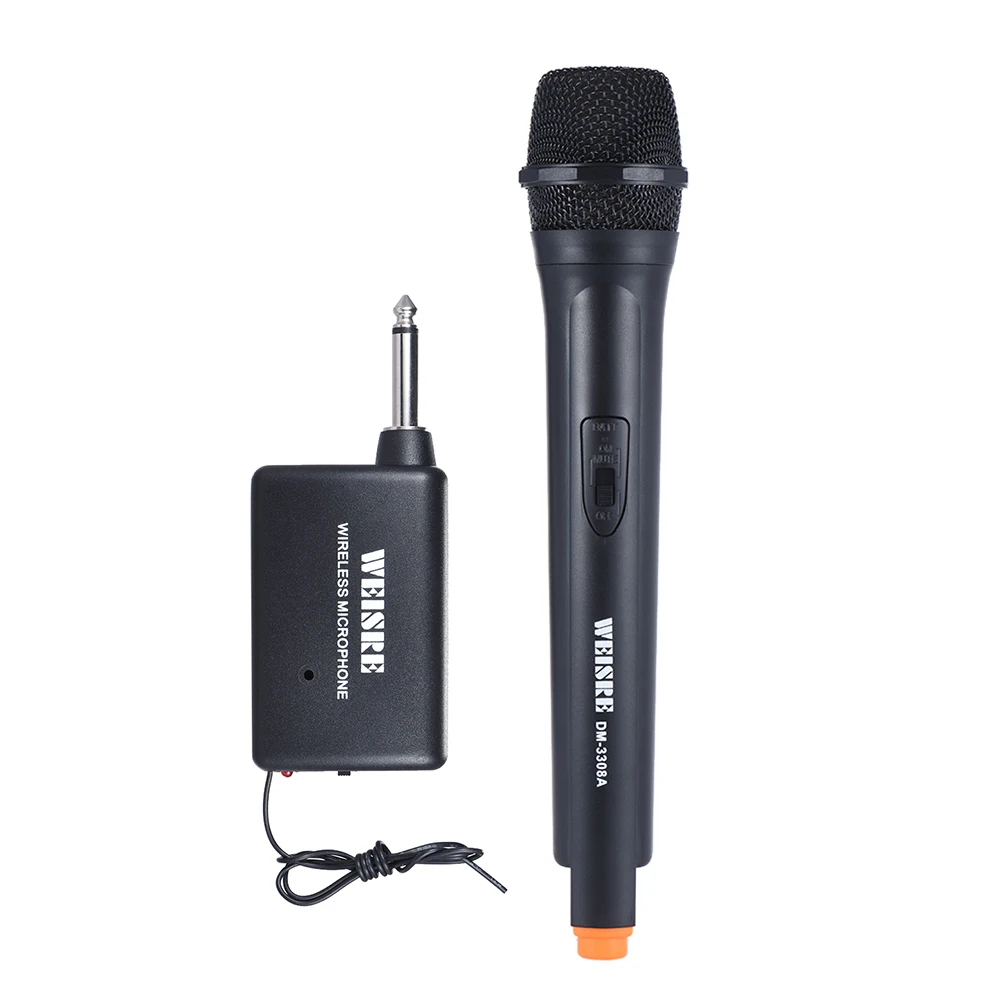 Беспроводной ручной однонаправленный микрофон эффективно дает высокое качество звука без каких-либо шумов или трещин, высокая чувствительность и 60 Гц ~ 13 кГц частотная характеристика, приемник VHF, рабочее расстояние до 30-50 метров на открытой местности без препятствий, идеально подходит для шоу,Караоке,Видео-чат, церемония, свадьба на открытом воздухе, продвижение рынка, класс, выставка и другие места рекламы.