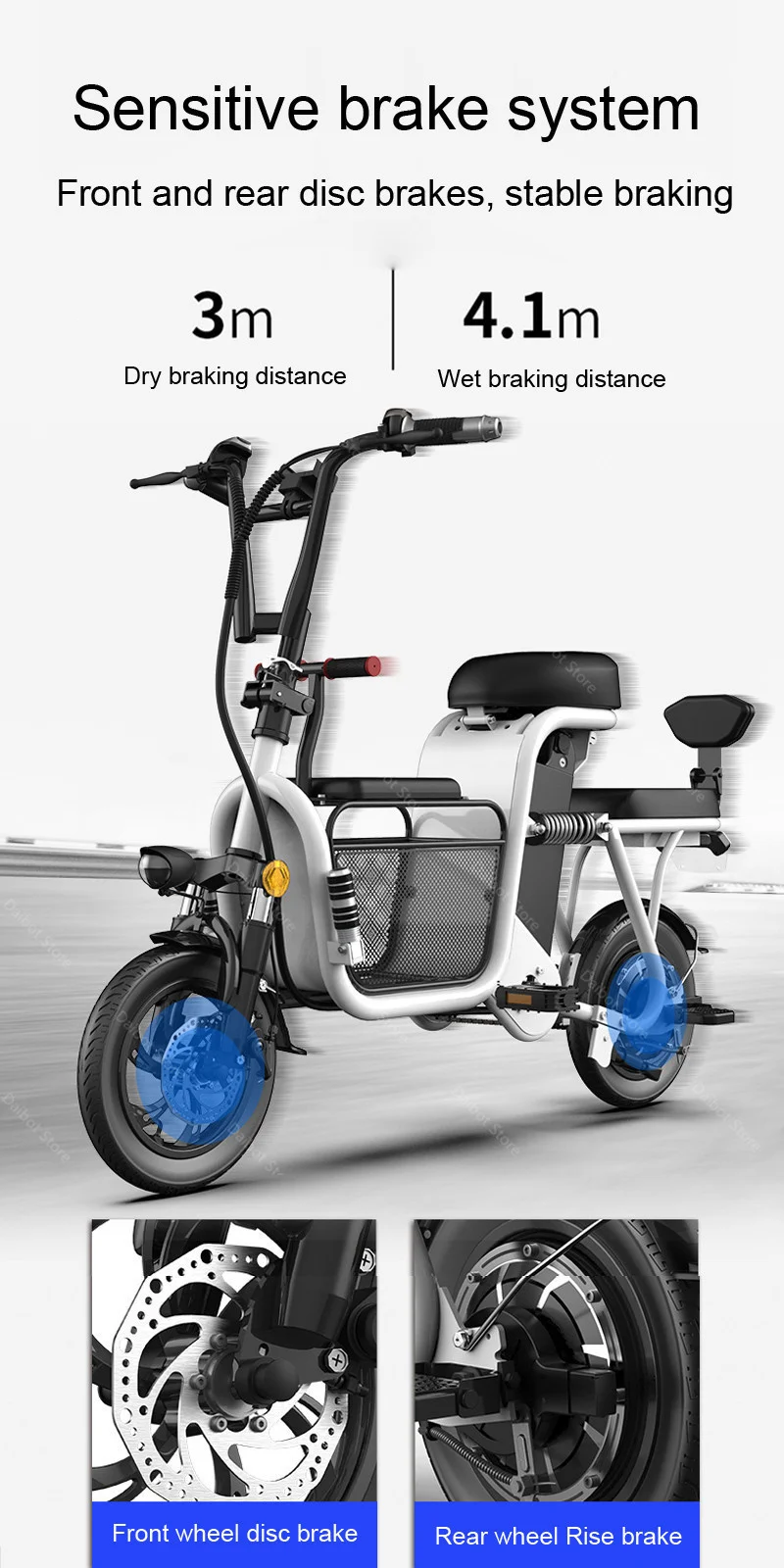(Зависит от веса, скорости, состояния дороги и погоды.Тест сделан на вес мотоциклиста 50 кг)Максимальная нагрузка: около 120-150 кгНапряжение зарядки: AC100-240V 50-60 ГцПосылка включает в себя: электрический скутер, зарядное устройство.Характеристика:Передняя Дисковая тормозная система, передняя ударная система подтяжки, Противоугонная сигнализация, светодиодный светильник на голову и задний светильник, тормозной светильник, поворотный фонарь, держатель на мобильный телефон, usb-порт для зарядки телефона, съемный аккумулятор, корзина для хранения, три удобных сиденья.