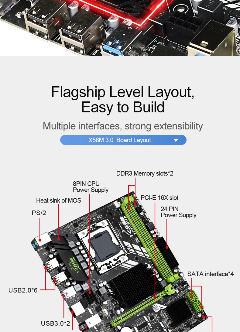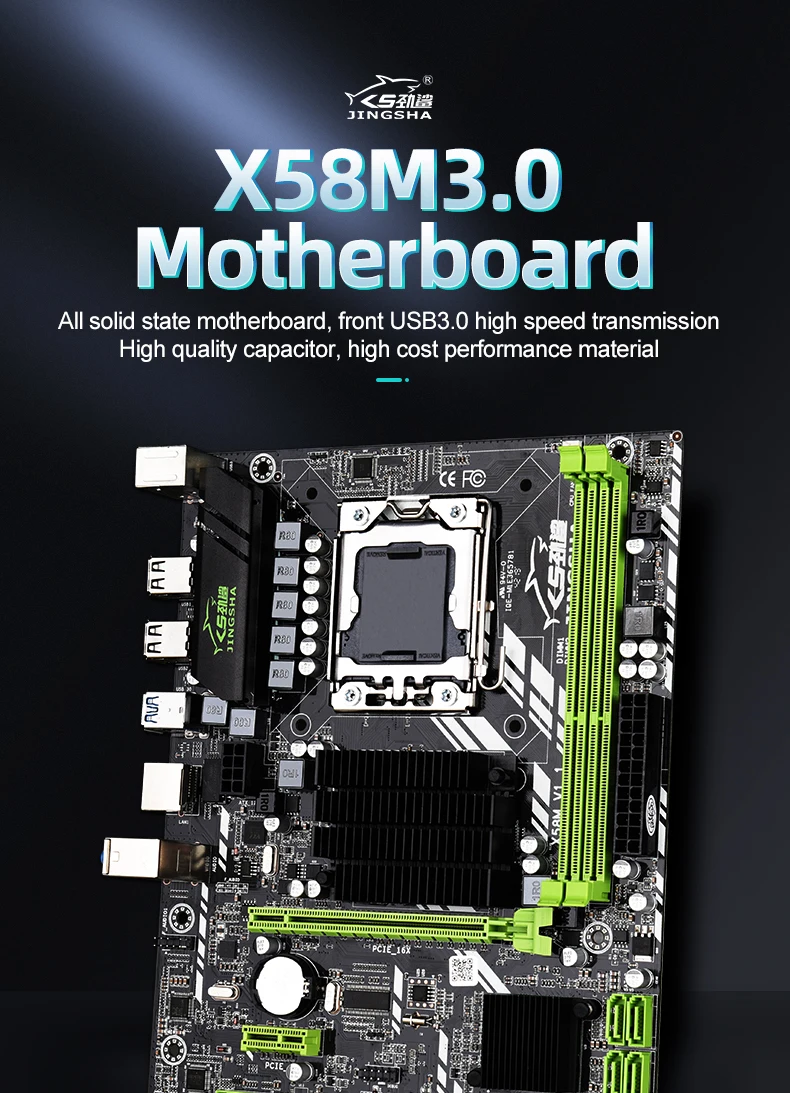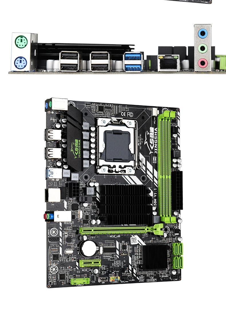 Материнская плата JINGSHA X58M LGA1366 3,0 MATX PCI-E 16X поддерживает DDR3 * 2 ECC REG RAM и настольную ОЗУ до 32 Гб