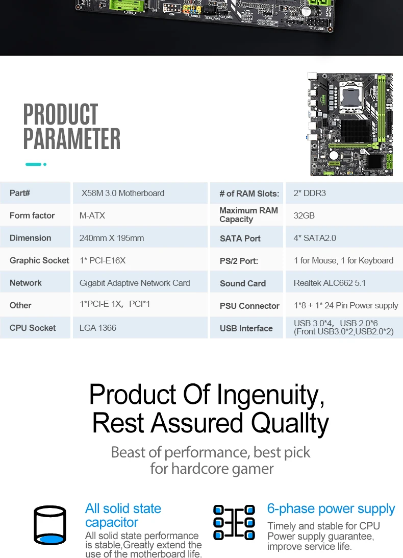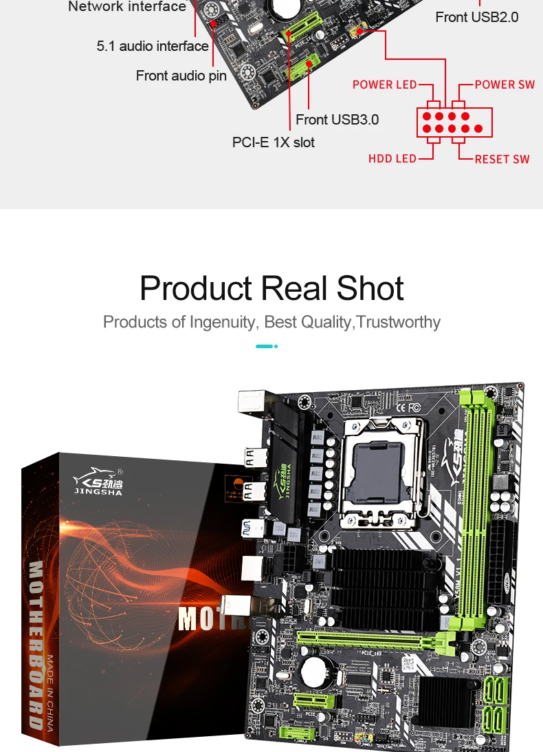 ➊Из-за различных партий продукции, Может быть какая-то разница между изображениями, которые вы видели, и продуктом, который вы получите, например,Коробки, цветные DIMM слоты, SATA порты, PCI или PCI-E слоты и другие порты, подлежат изменению без предварительного уведомления.Одна вещь точно в том, чтоМы никогда не ставим под вопросКачество нашей продукции.