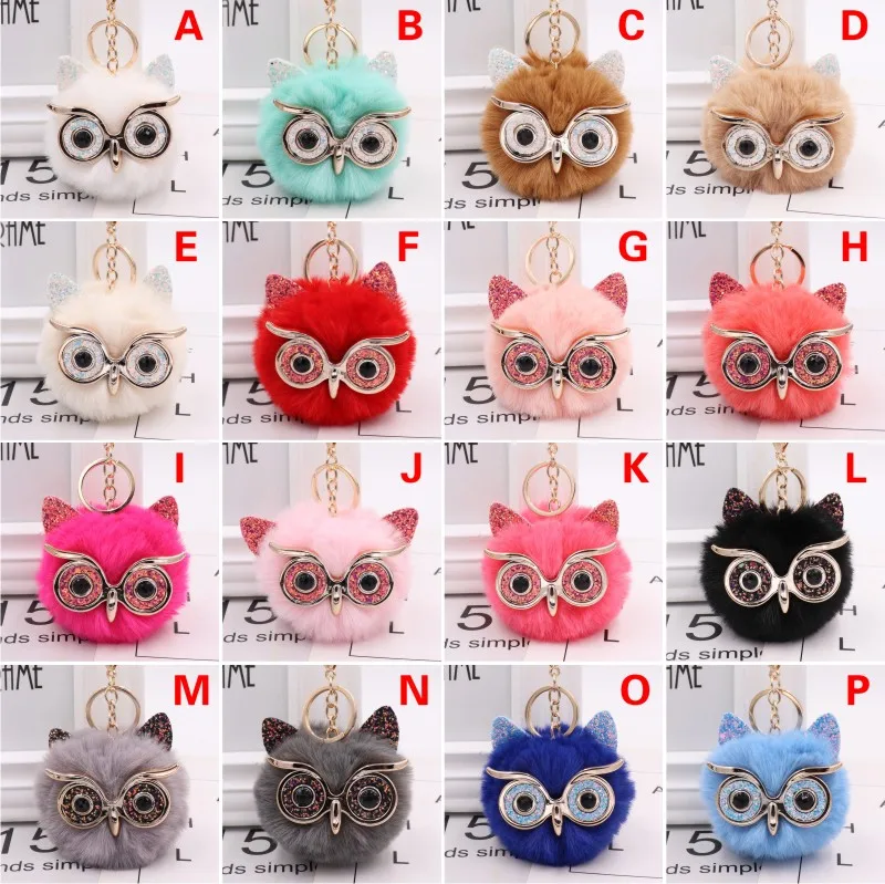 12 см Шарм пушистый помпон животное брелок для ключей в форме Совы Кольцо Кулон помпон искусственный мех лисы мяч брелок для женщин Автомобильная сумочка брелок