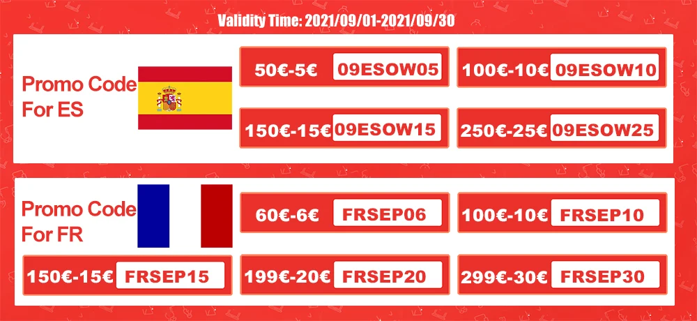 Промо-код для французских, испанских клиентов в сентябре зарубежного склада/Бразилии/Кореи клиентов: