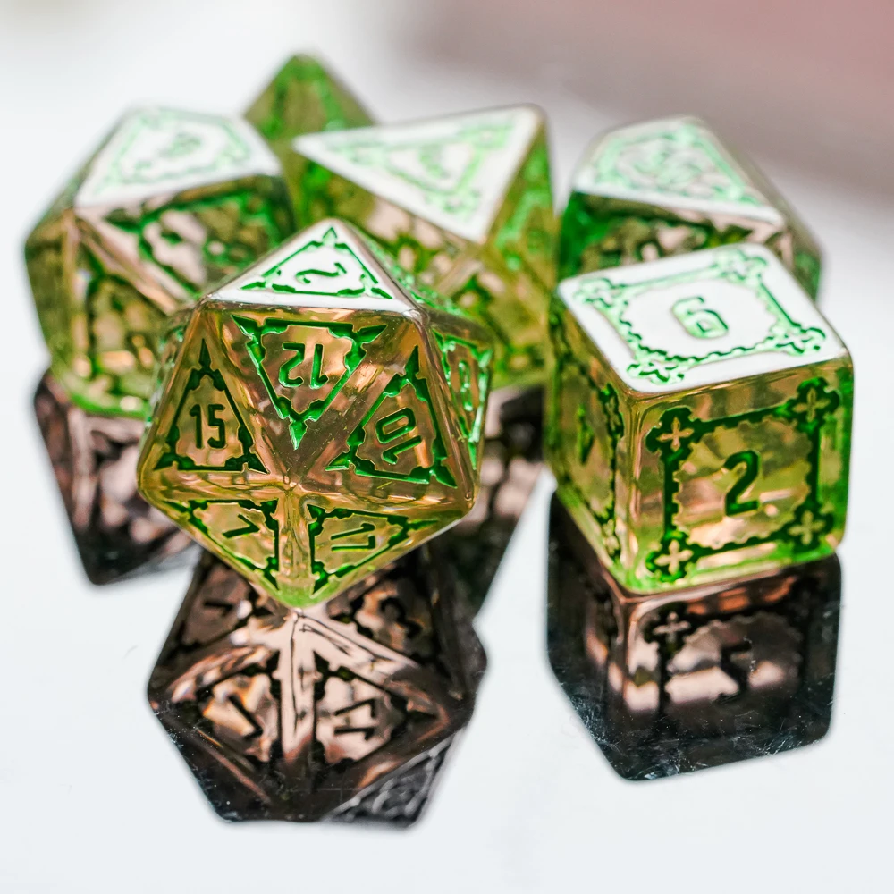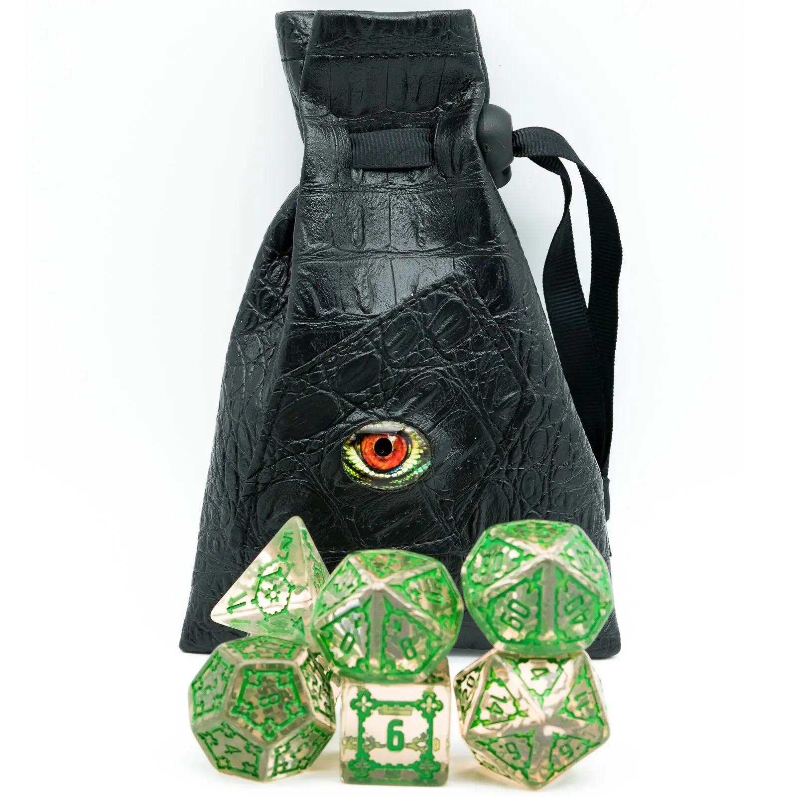 Это полный набор игральных костей, включая 1 * D4, 1 * D6, 1 * D8, 1 * D10(0-9), 1 * D12, 1 * D20 и 1 * D %(00-90), и в посылка есть кожаная сумка в качестве бесплатного подарка для хранения этих кубиков.