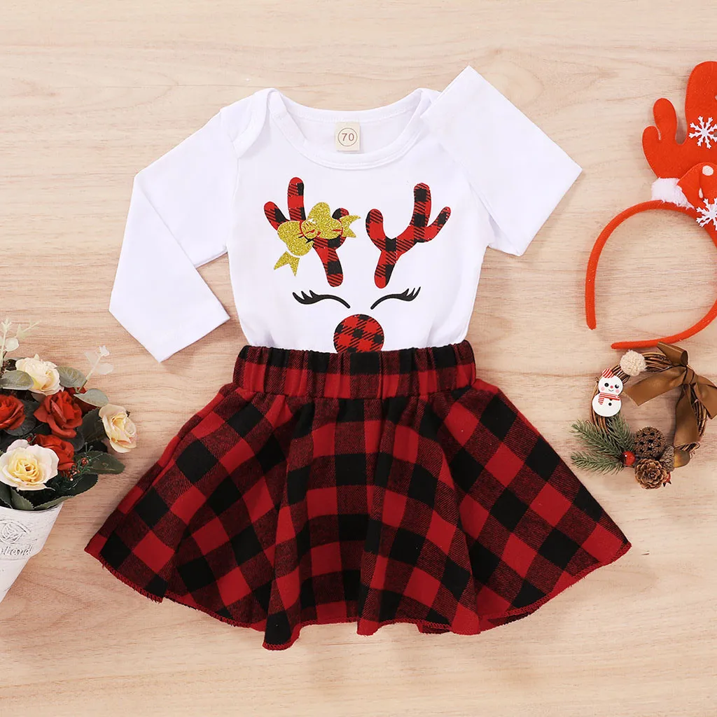 Детский Рождественский комбинезон с надписью для маленьких девочек, боди + юбка, наряды