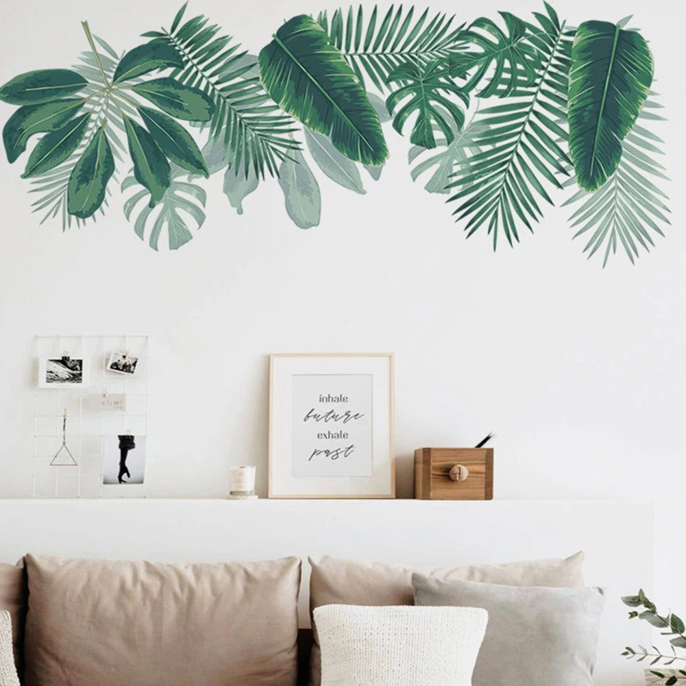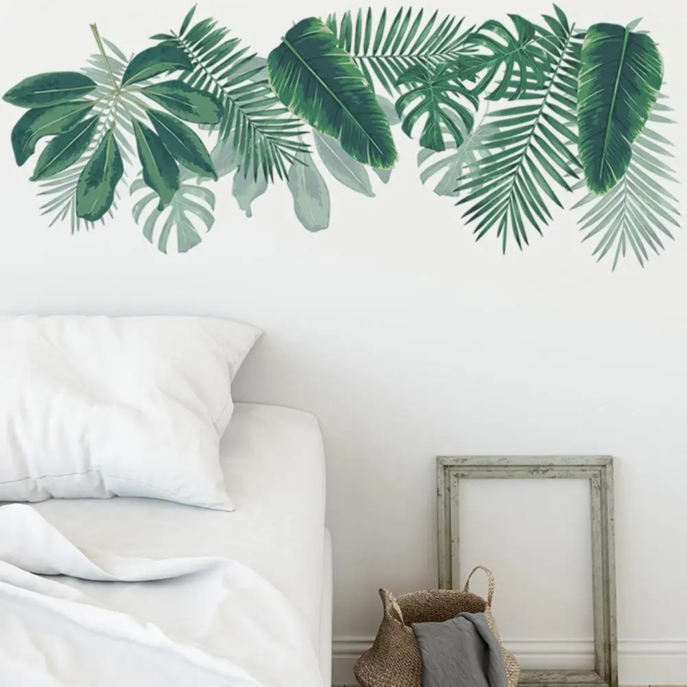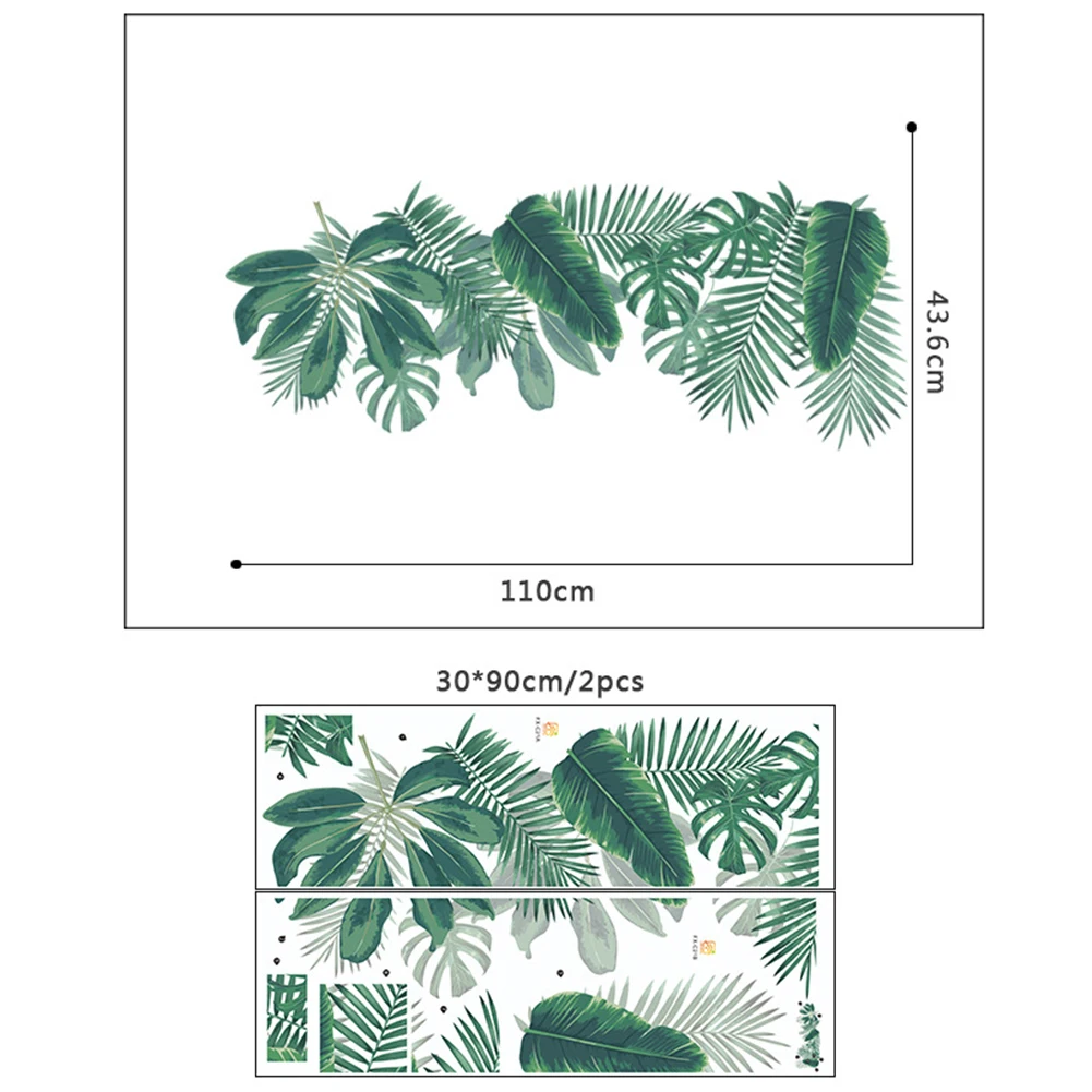 2Pcs Green Leaf Wall Stickers Self-adhesive Wallpaper Bedroom Living Room Decor