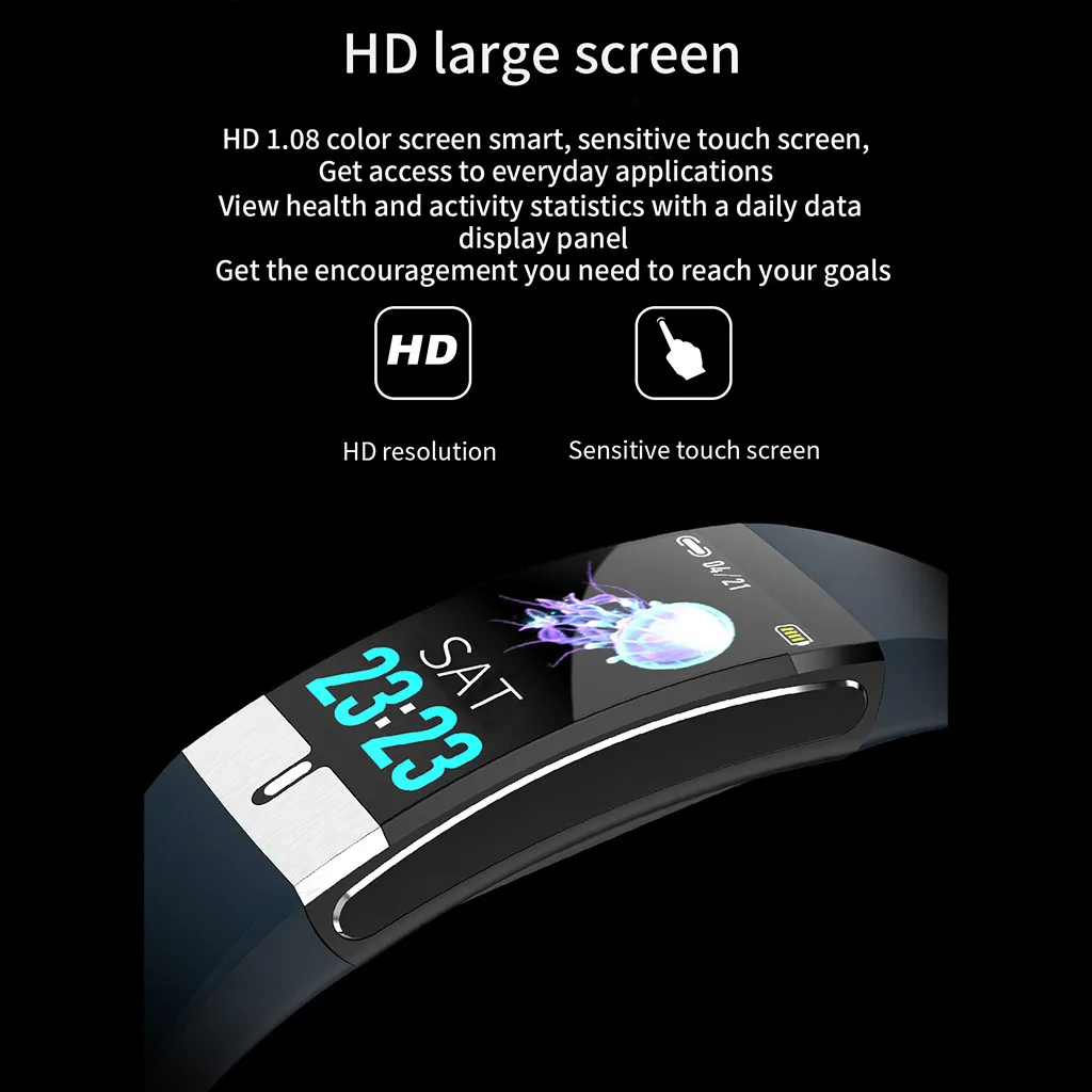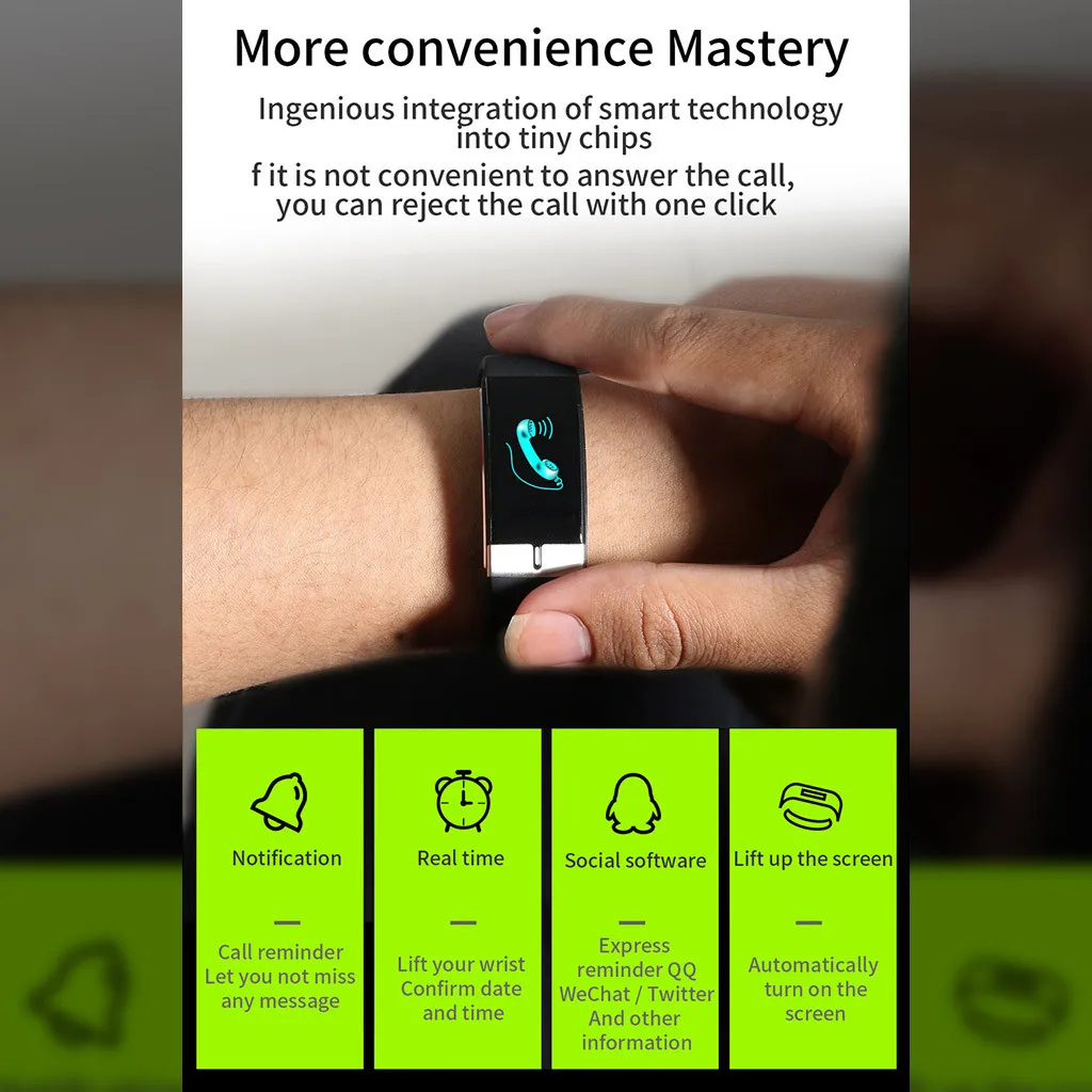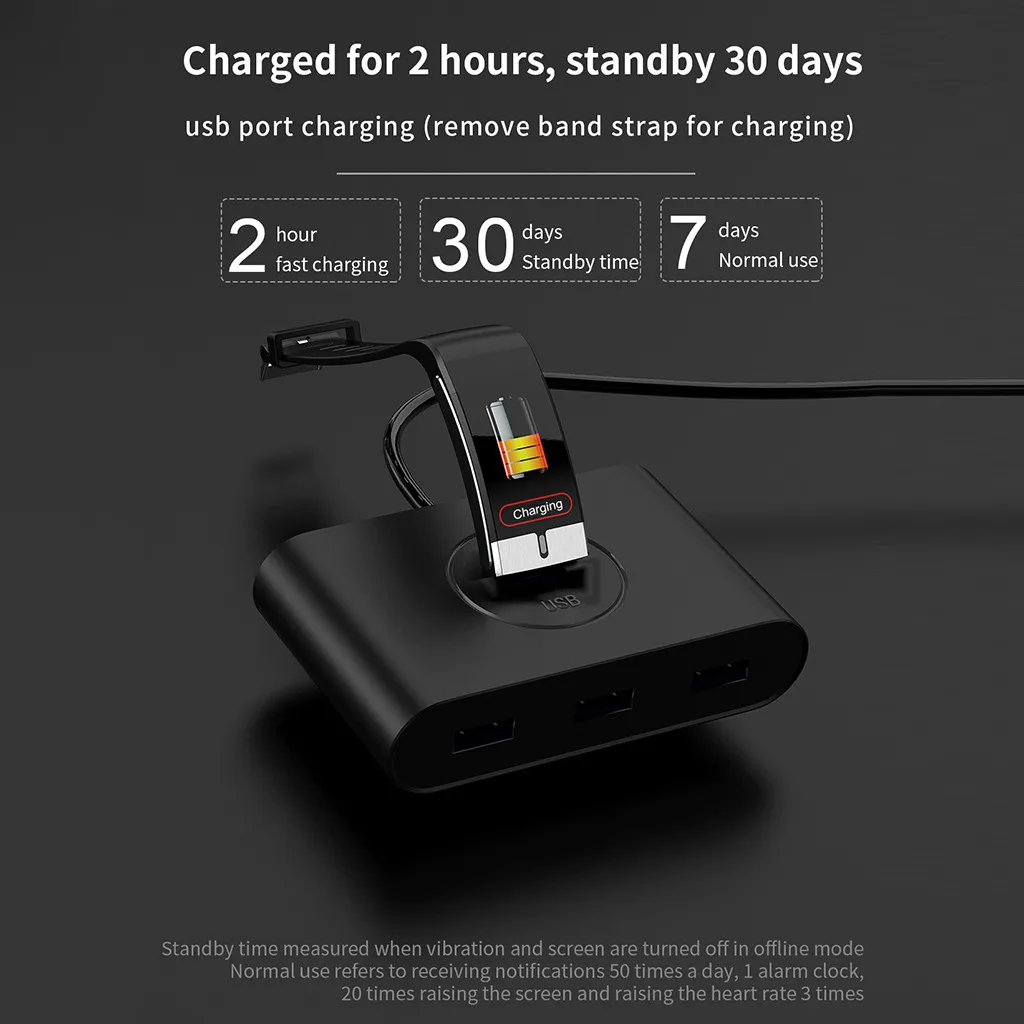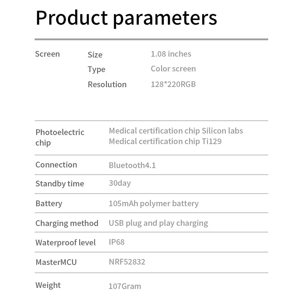 Сенсор G-сенсор, датчик сердечного ритма Экран Размер: 1,14 дюйма Тип: TFT Разрешение: 135x240 пикселей Батарея Емкость аккумулятора: 105 мАч В режиме ожидания Время: около 7 дней Время использования: Около 4 дней Зарядка Время: около 1 часа Зарядка Тип: зарядка через USB Внешний вид И деталиВес и размер: