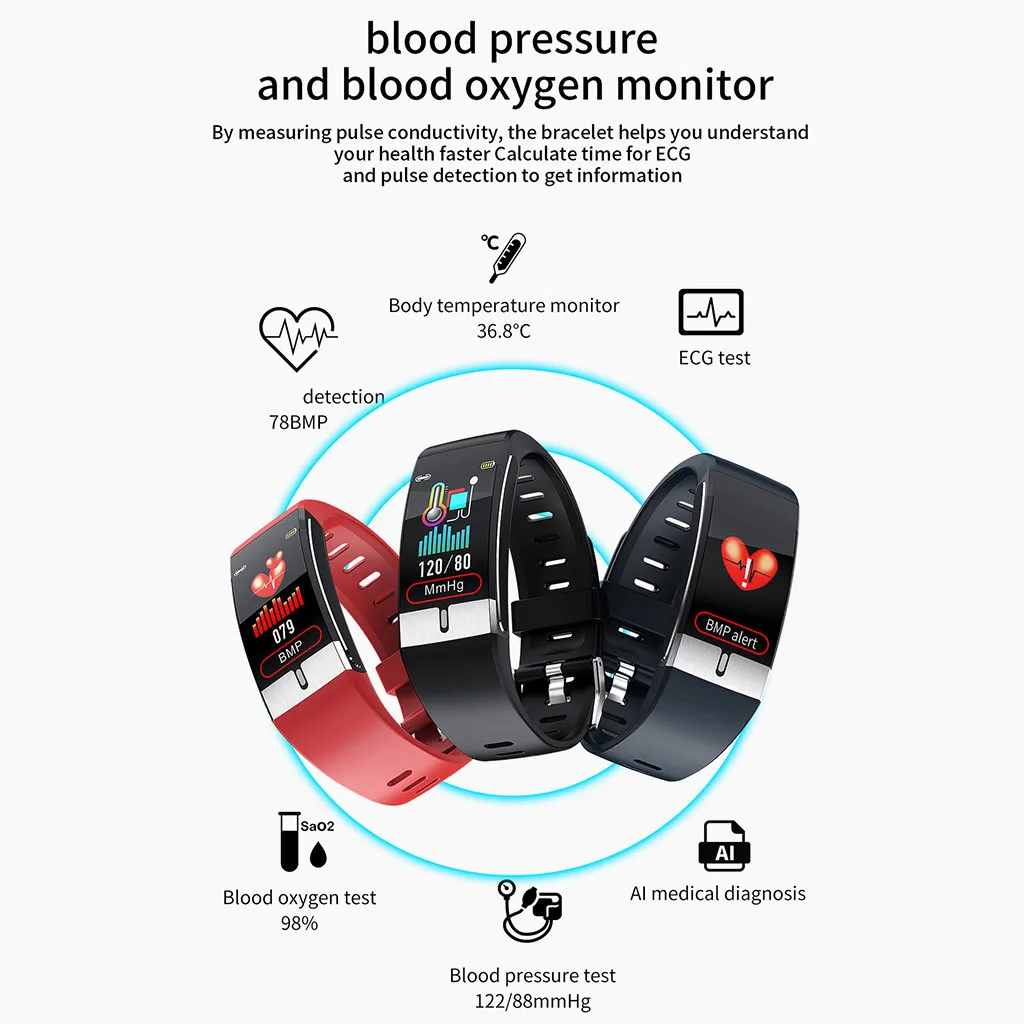 E66 + монитор здоровья ЭКГ, умные часы, термометр, измерение температуры, отслеживание маршрута бега, управление музыкой, спортивные умные часы с пульсом