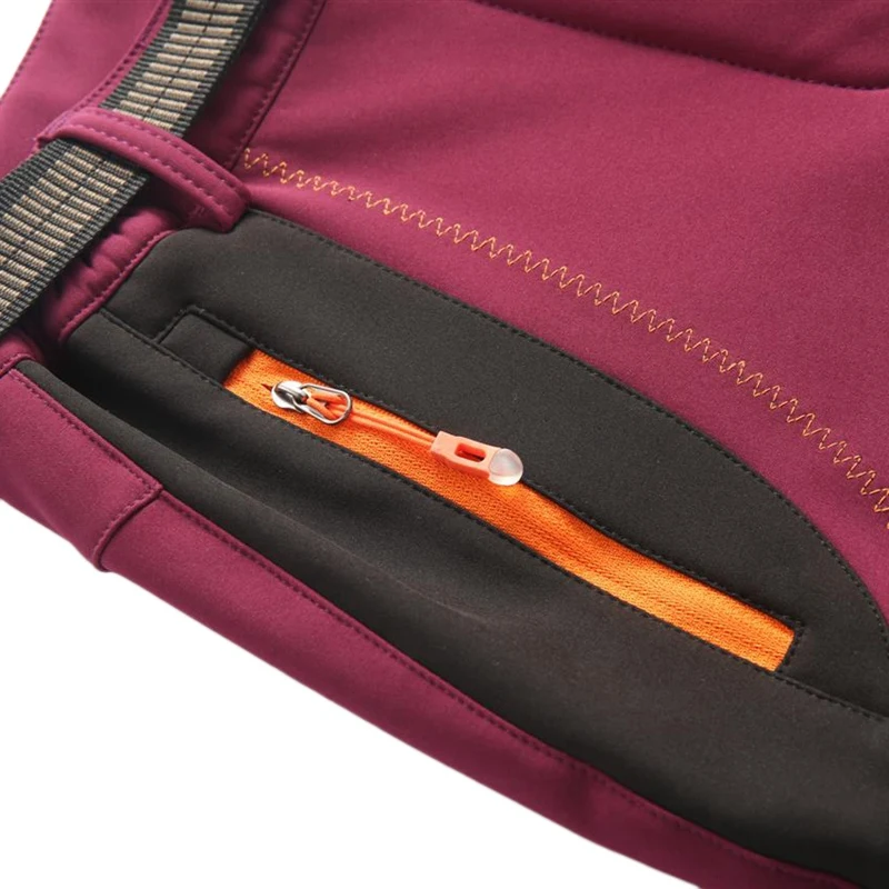Зимние женские Походные штаны, уличные флисовые брюки, водонепроницаемые ветрозащитные для кемпинга, лыжного альпинизма, темно-бордовый, XXXL