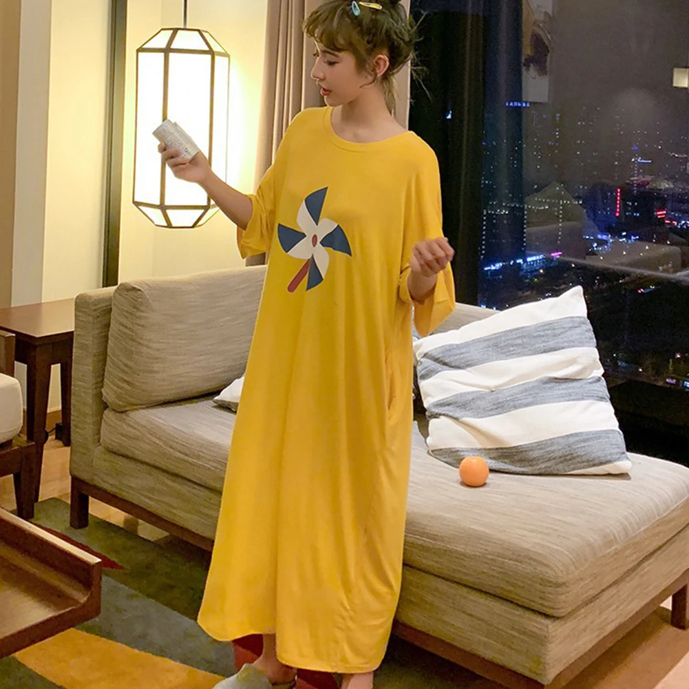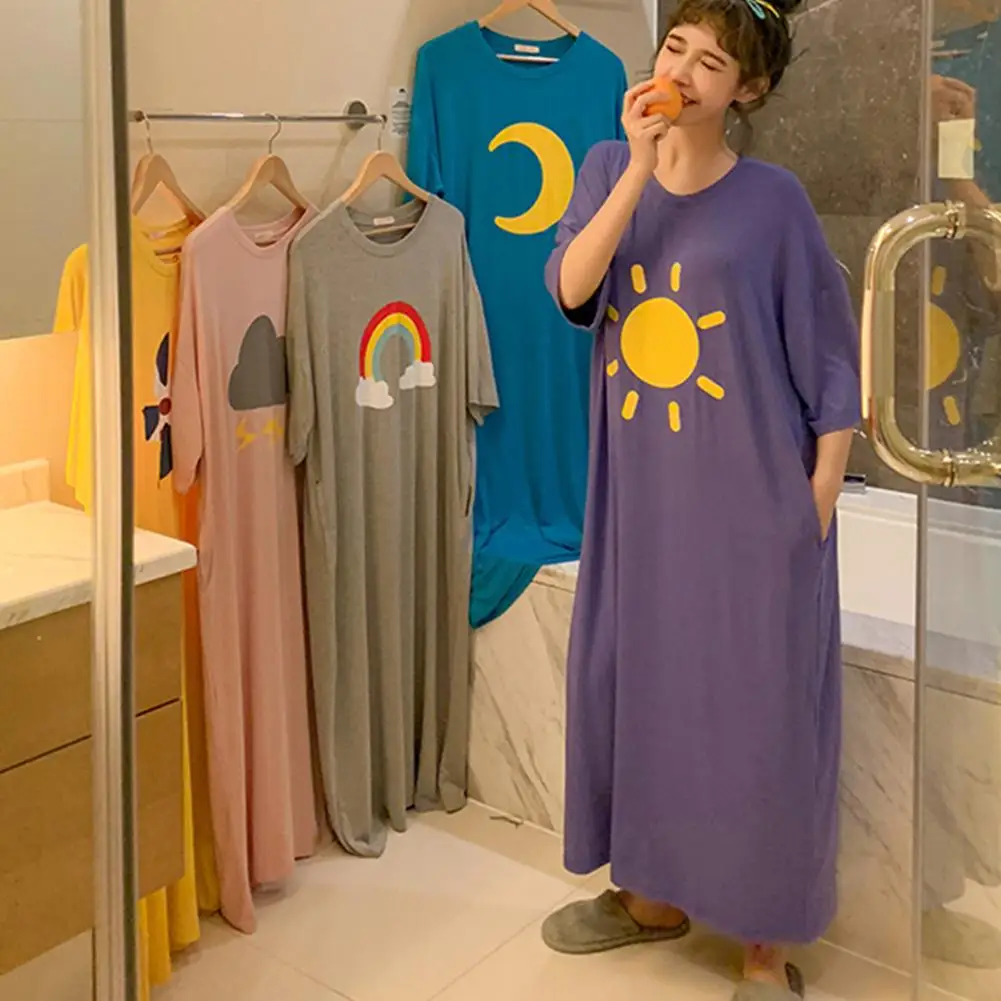 Женская ночная рубашка с коротким рукавом и круглым вырезом, с рисунком солнца, Луны, радуги, ветряной мельницы, облака