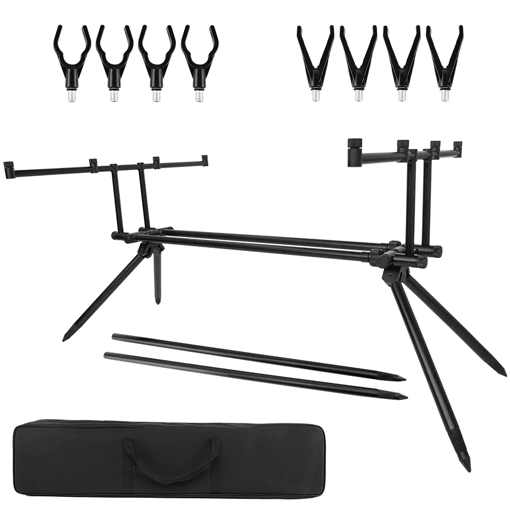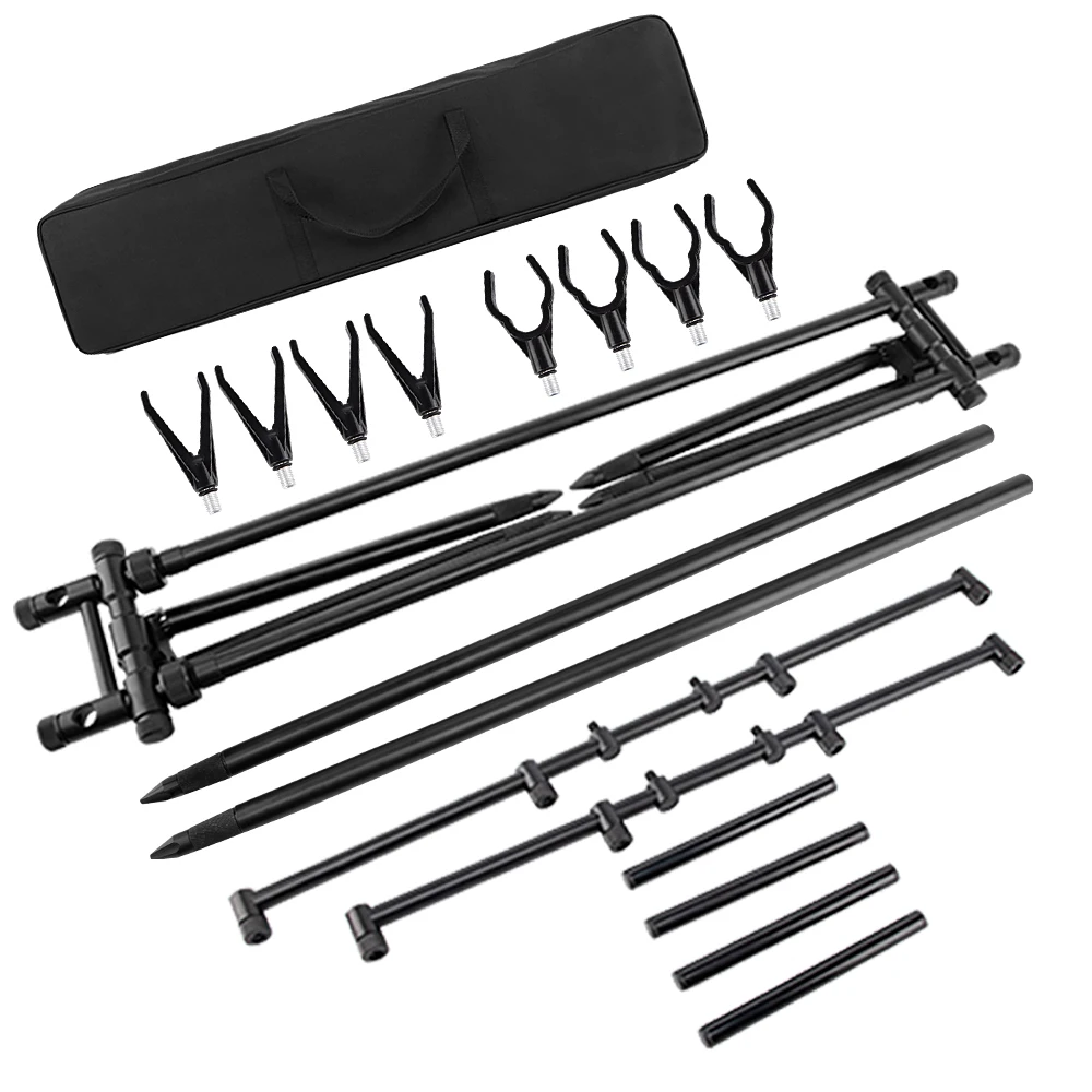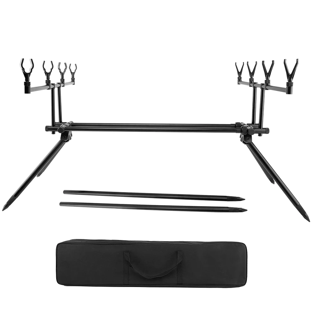 Эта съемная подставка для удочки предназначена для рыболовных мест, где банковская палка трудно, как резервуар, озеро и река, и она может вместить 4 удочки и 4 системы сигнализации.