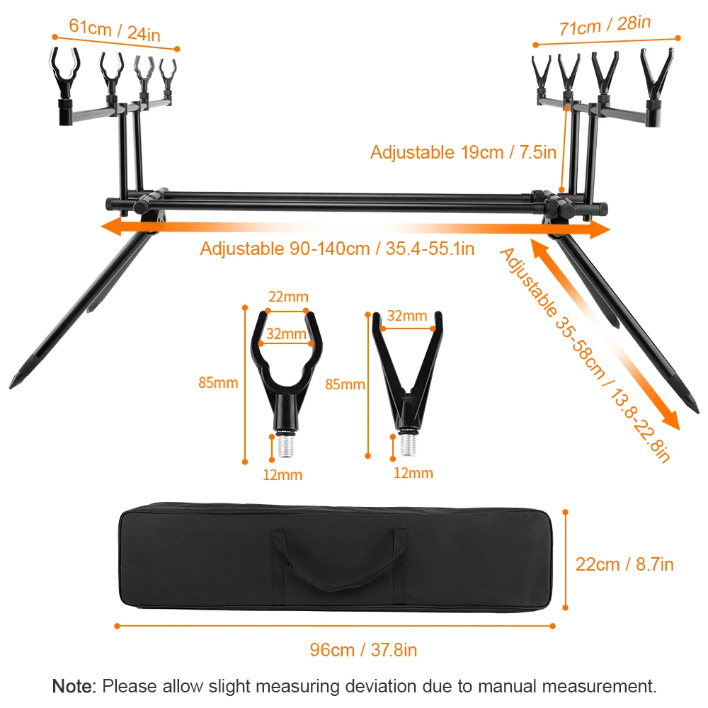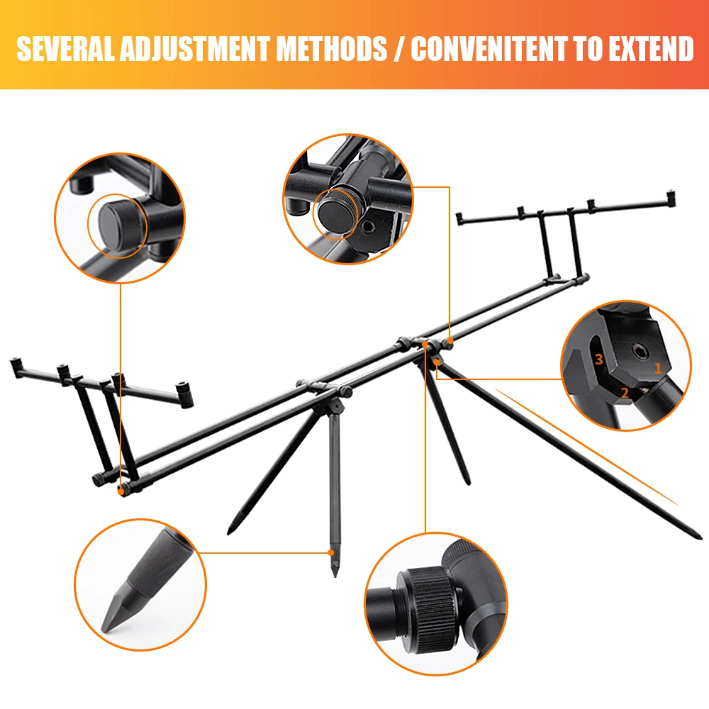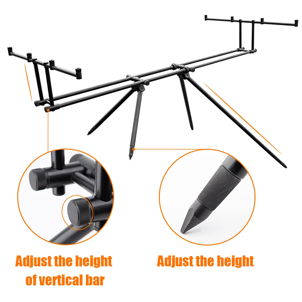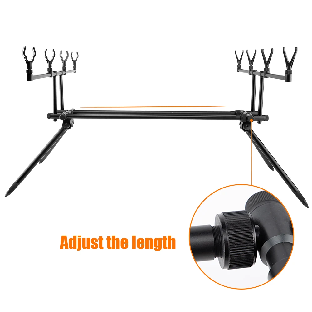 Эта съемная подставка для удочки предназначена для рыболовных мест, где банковская палка трудно, как резервуар, озеро и река, и она может вместить 4 удочки и 4 системы сигнализации.