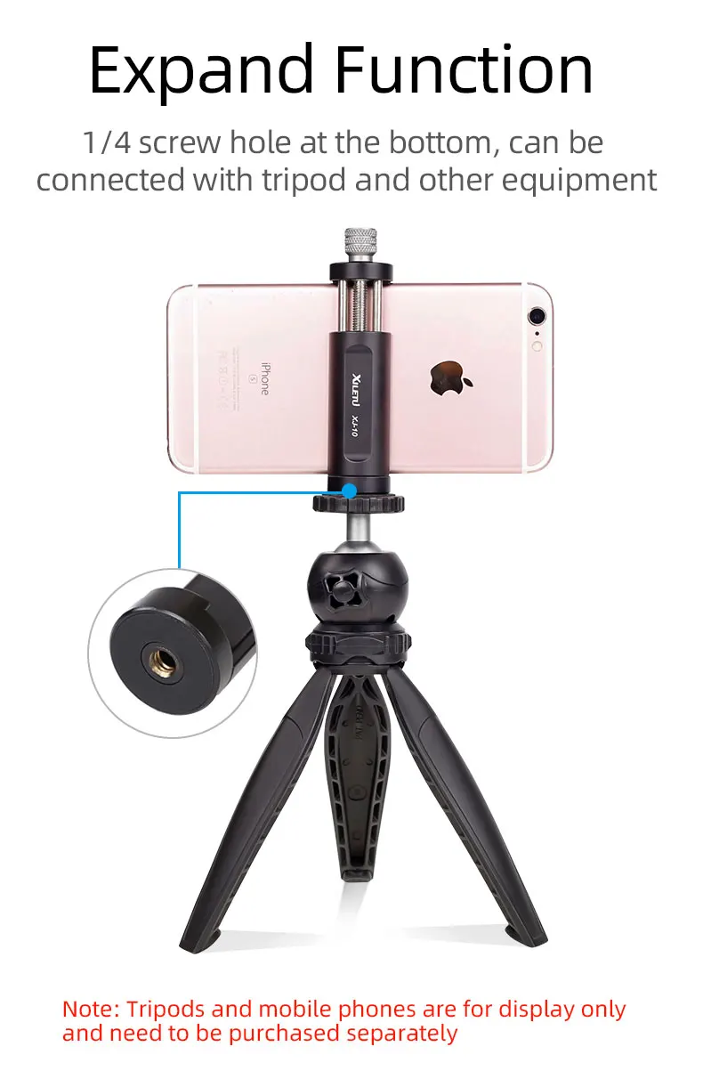 Легко установить Любой смартфон на штатив без инструментов. Стандартный винт с резьбой 1/4 "делает его полезным универсальным адаптером для крепления штатива телефона.