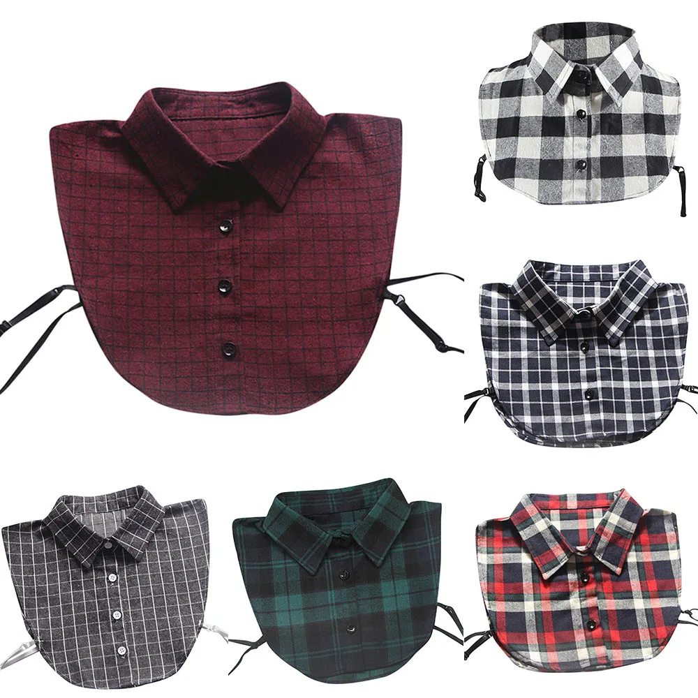 Женская клетчатая Новая блузка с ложным воротником, рубашка со съемными воротниками