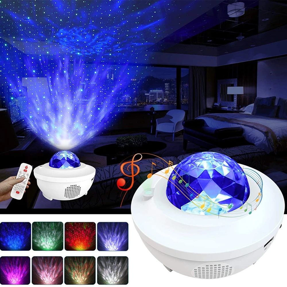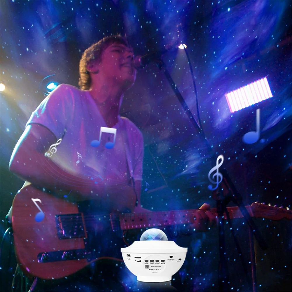 Цвет: черный, белый Напряжение: 5 В постоянного тока Мощность Источник: USB Мощность: 6 Вт Световой поток Функции: светодиодный светильник-проектор, музыкальный динамик, Bluetooth, пульт дистанционного управления Оттенок Материал: Пластик Светодиодный светильник цвета: красный/зеленый/синий/белый Мощность пульта дистанционного управления: 2 батарейки XAAA (не входят в комплект) Размер: 13,5*13,5*10 см/5,25*5,25*3,94 дюймов