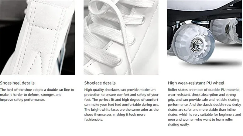 ❤【Безопаснее и стабильнее 】 классические двухрядные роликовые коньки безопаснее и стабильнее, чем Встроенные роликовые коньки. Есть опорная колонна спереди для лучшего управления и быстрого торможения. Они очень подходят для начинающих и мужчин и женщин, которые хотят легко научиться катанию на роликах.