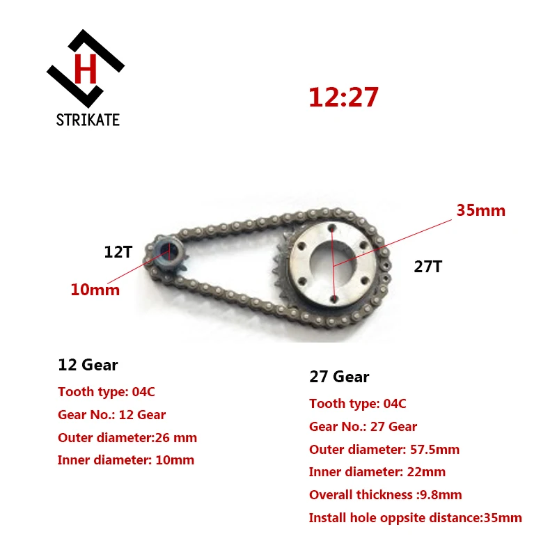 DIY электрическое снаряжение для скейтборда комплект кругов 04C 2 точки цепи колеса Шестерня 27 передач электрические Diy колеса