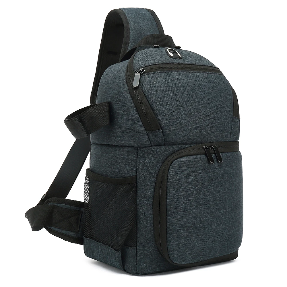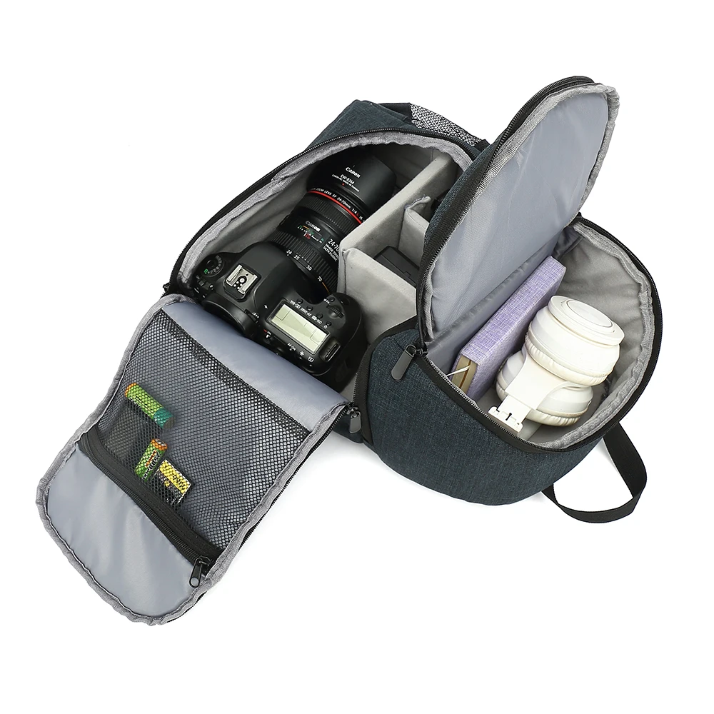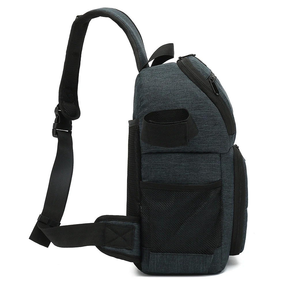 Сумка для камеры с одним плечевым ремнем, боковой сетчатый карман можно положить зонтик, или он может поставить штатив с фиксированным ремнем. Он имеет удобный дизайн отверстия для наушников и петли для ключей. Большая емкость и организованное хранение для камер, сумка идеально подходит для наружной фотосъемки.