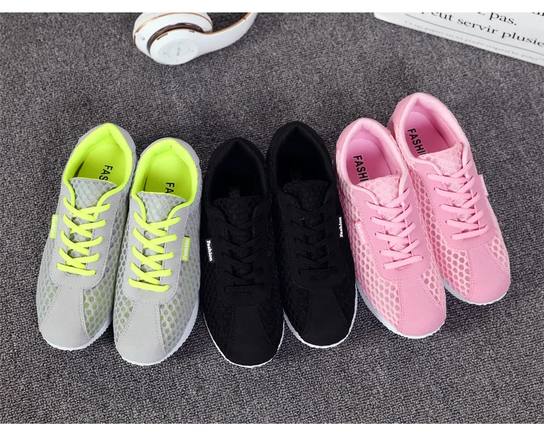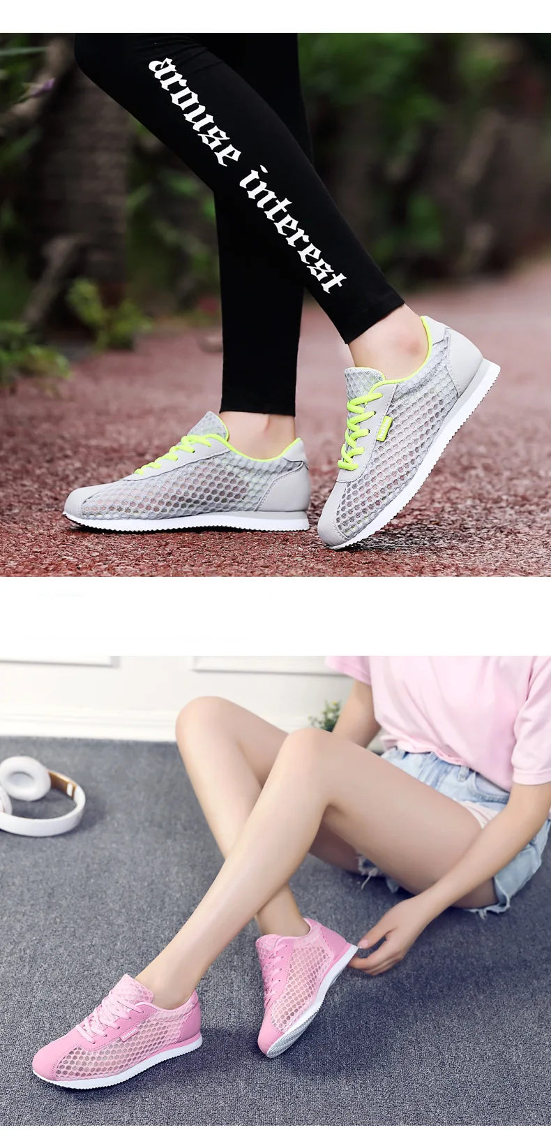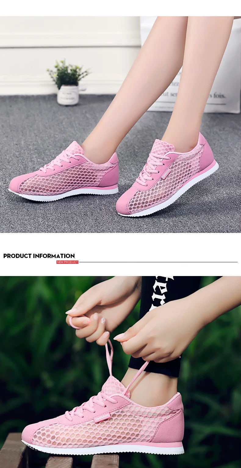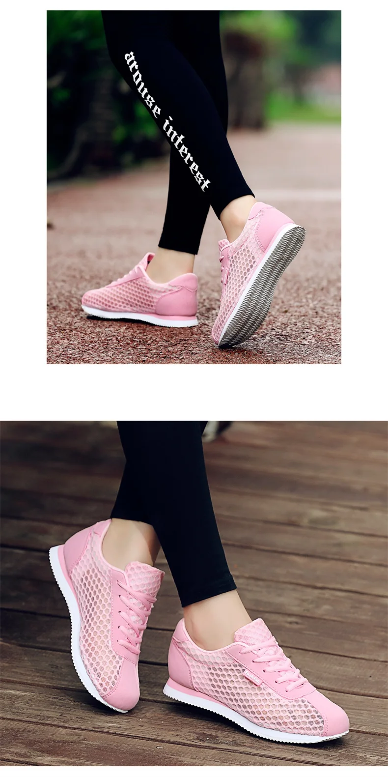 Модные Розовые сетчатые Женские кроссовки с вырезами; Летняя Удобная дешевая спортивная обувь; Женская легкая спортивная обувь на шнуровке для бега