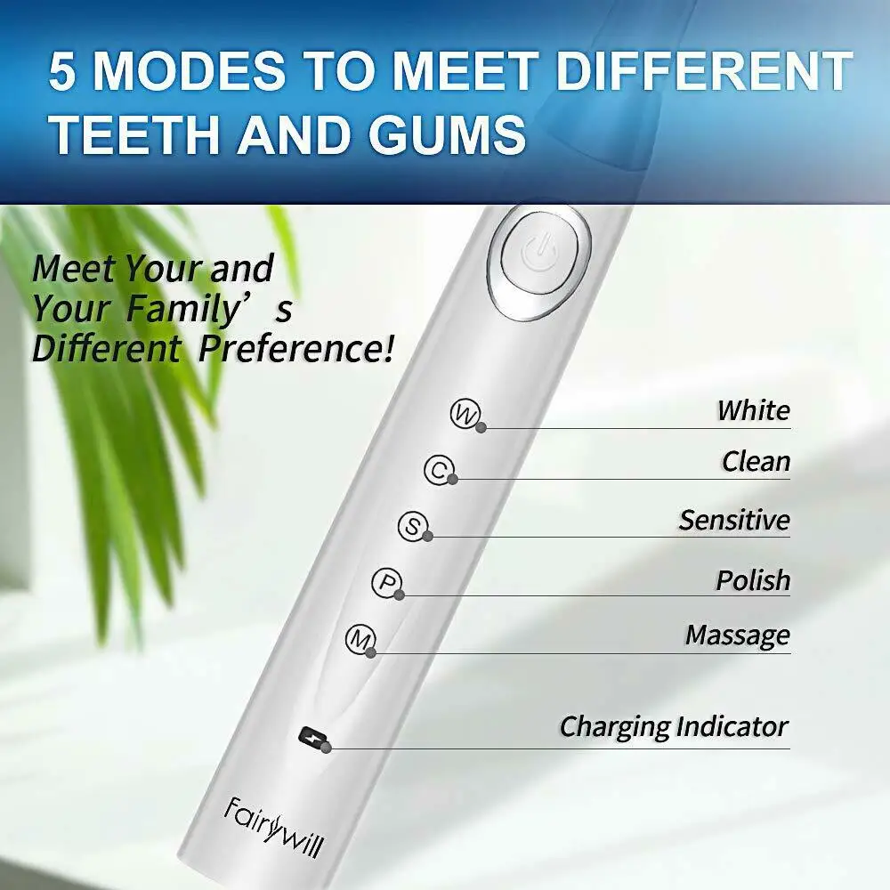 5 различных режимов для удовлетворения различных потребностейТеперь вы можете выбрать наиболее подходящие настройки, чтобы соответствовать вашим потребностям полости ртаОтбелить-Сильнейшая интенсивность вибрации с большинством штрихов в минуту, чистые упорные пятна, такие как кофе, дым, пятна вина и т. Д.