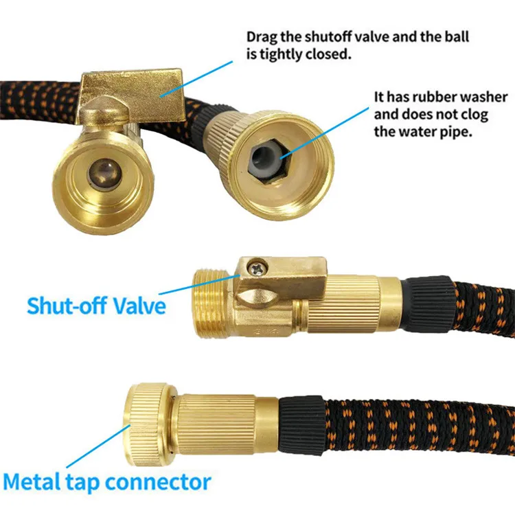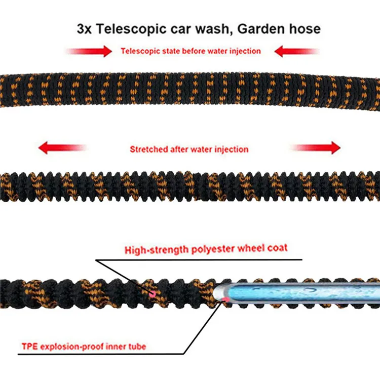 Описание продукта: Название продукта: садовый шланг, шланг для мойки автомобиля Телескопическая Длина 25 футов = (7,5 метров после закачки воды), 50 футов (15 метров после закачки воды), 75 футов (22,5 метров после закачки воды), 100 футов (30 метров после закачки воды), 125 футов (37,5 метров после закачки воды), Исходная длина: 25ft-2.5m, 50ft-5m, 75ft-7.5m, 100ft-10m, 125ft-12.5m Материал внутренней трубки: трехслойный плотный латекс Материал соединения водопроводных труб: сплошное Латунное соединение Класс 1: внутренняя трубка водопроводной трубы представляет собой натуральную латексную внутреннюю трубку 6*10 2: все фотографии являются реальными, прямые продажи с завода, Настраиваемые