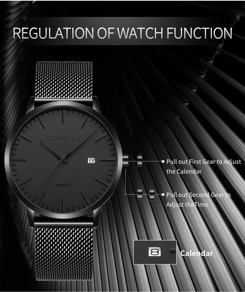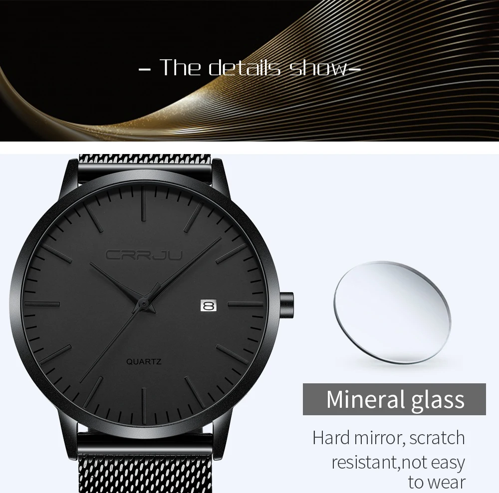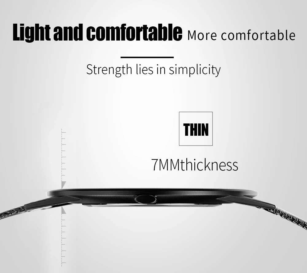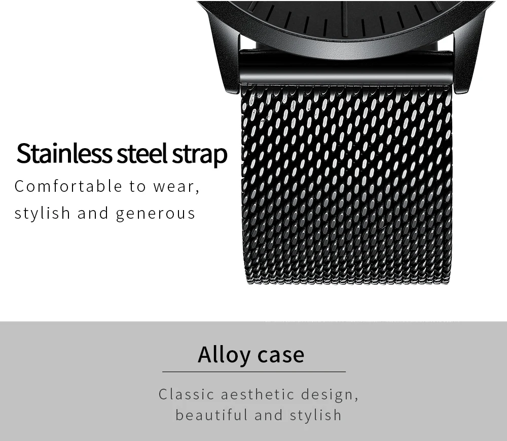 Ультратонкий простой дизайн: ультратонкий циферблат толщиной 7 мм с закругленными черными линиями корпуса часов, внешний вид в минималистском стиле, уникальный и привлекательный. Модные наручные часы унисекс: классический и стильный черный циферблат, маленькое окошко даты. Модный дизайн подходит для мужчин и женщин. Высококачественный материал: мягкая и удобная сетчатая лента с пряжкой-крючком, легко снимается и регулируется. Прочные ремешки из нержавеющей стали, устойчивые к царапинам хрустальные зеркала отвечают вашим повседневным потребностям. Водонепроницаемость 3 атм/30 м (подходит для холодного душа и плавания, не использовать часы под водой, не поддерживает горячую воду); Послепродажное обслуживание: если у вас есть какие-либо вопросы о товаре, пожалуйста, свяжитесь с продавцом, мы предложим вам удовлетворительное решение.