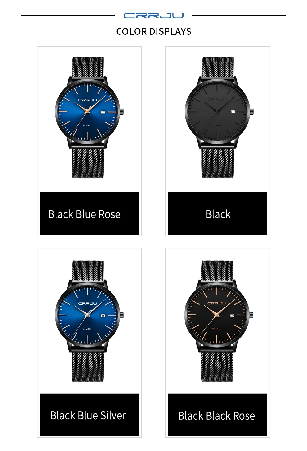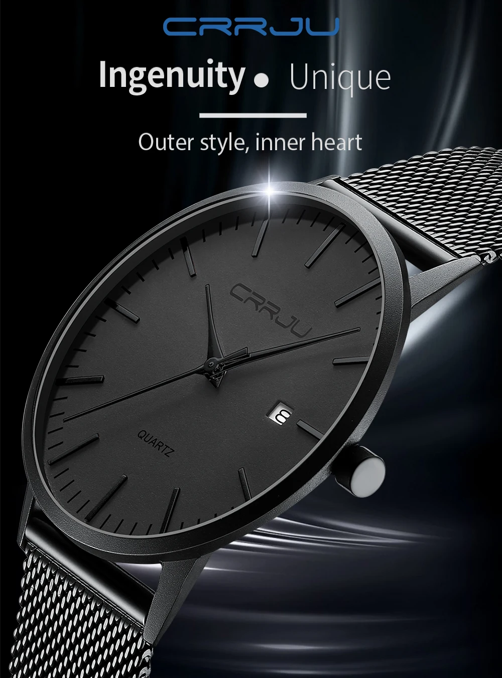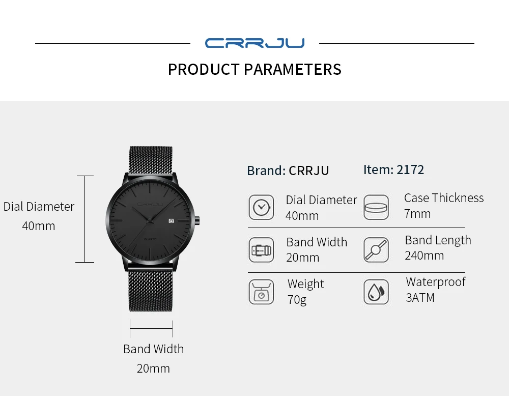 Ультратонкий простой дизайн: ультратонкий циферблат толщиной 7 мм с закругленными черными линиями корпуса часов, внешний вид в минималистском стиле, уникальный и привлекательный. Модные наручные часы унисекс: классический и стильный черный циферблат, маленькое окошко даты. Модный дизайн подходит для мужчин и женщин. Высококачественный материал: мягкая и удобная сетчатая лента с пряжкой-крючком, легко снимается и регулируется. Прочные ремешки из нержавеющей стали, устойчивые к царапинам хрустальные зеркала отвечают вашим повседневным потребностям. Водонепроницаемость 3 атм/30 м (подходит для холодного душа и плавания, не использовать часы под водой, не поддерживает горячую воду); Послепродажное обслуживание: если у вас есть какие-либо вопросы о товаре, пожалуйста, свяжитесь с продавцом, мы предложим вам удовлетворительное решение.