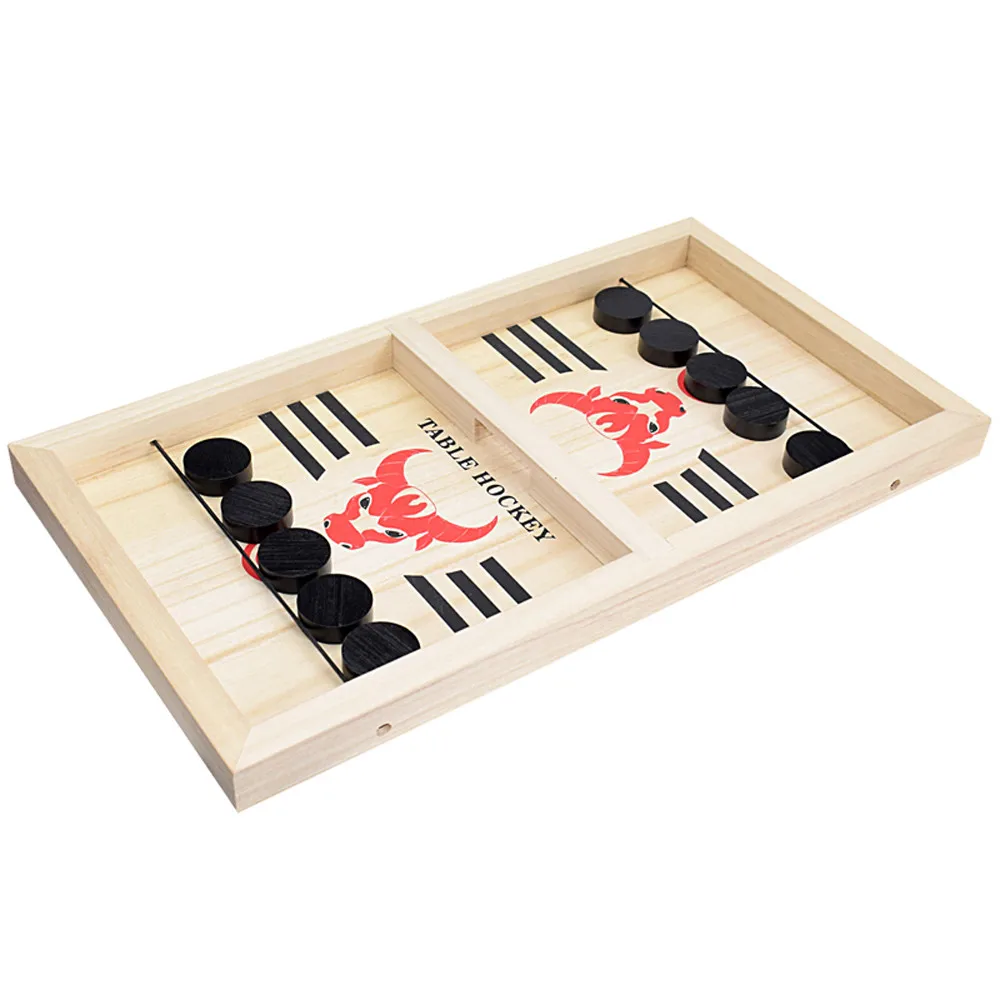 Материал: дерево Размер продукта: 40X22X2.5cm Как играть 1. Два игрока. 2. Начните игру и разместите пять Шайбы на каждой стороне доски. Вставьте оба конца эластичной ленты в Боковые канавки так, чтобы они вставлялись в место. Два игрока аплодировали Стиль «High Ten» для начала игры. 3. В плеере используется эластичная лента Для запуска-шайба от двери до тех пор, пока рядом с ней нет шайбы. Игроков Не поворачивайтесь, они просто заправляются и снимаются как можно быстрее. Те, кто очищает Первая выиграна плата. 4. Дополнительные вариации игры.Технические характеристики:Посылка содержание: