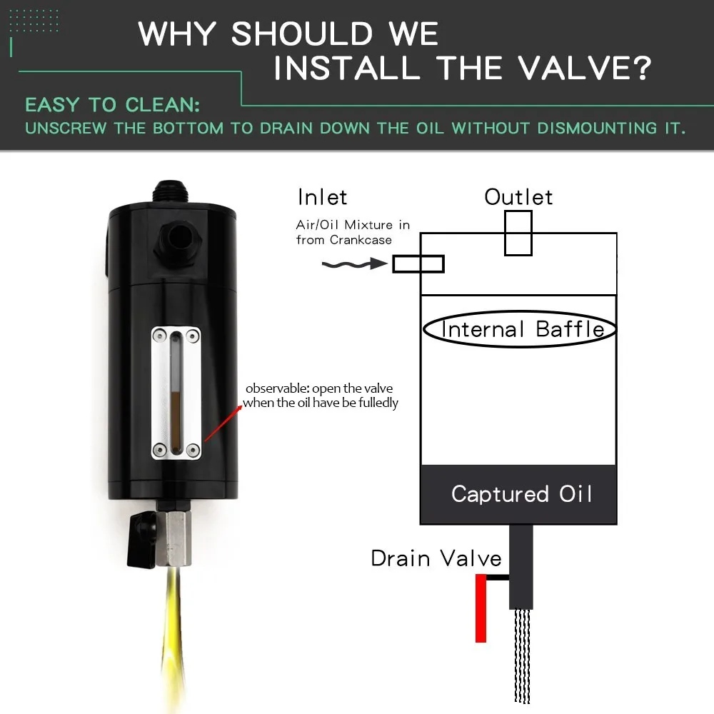 Универсальный наблюдаемая 500 мл Автогонки 2-Порты и разъёмы маслоуловитель комплект фильтрующих пластин воздушно-масляного сепаратора комплект со съемным клапан