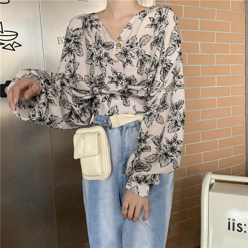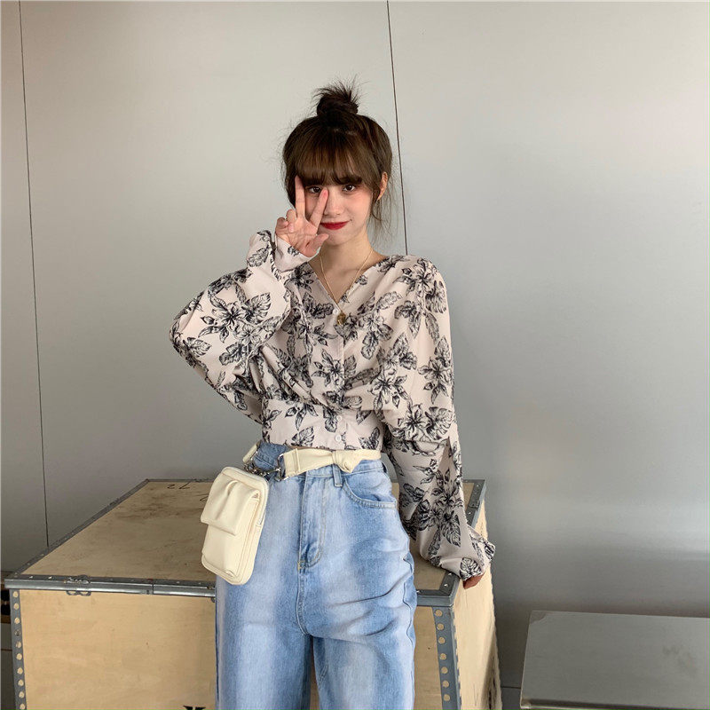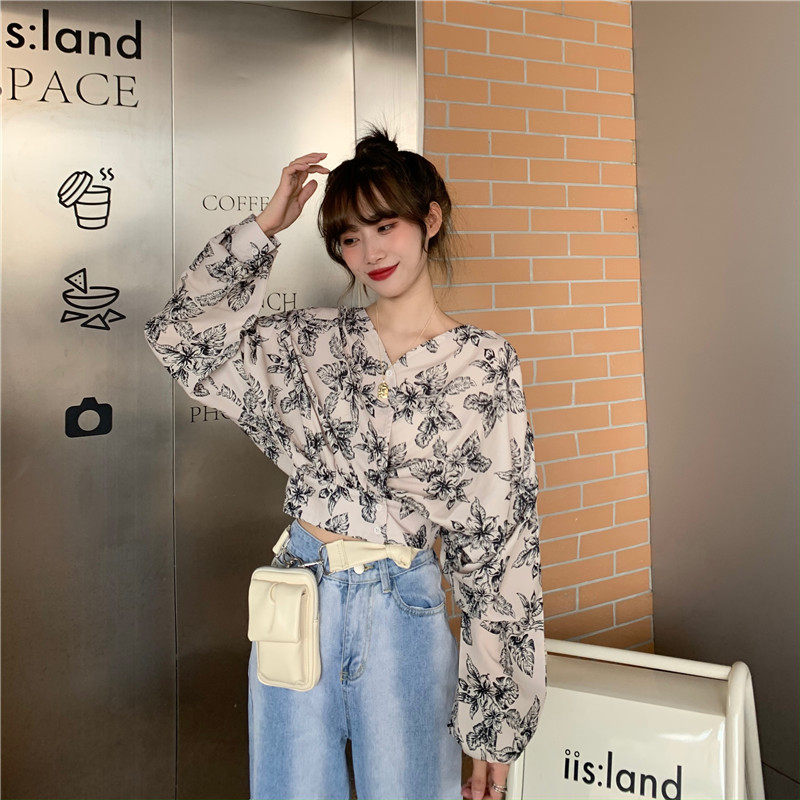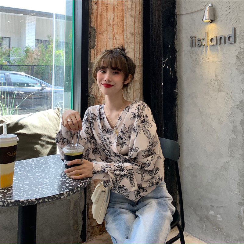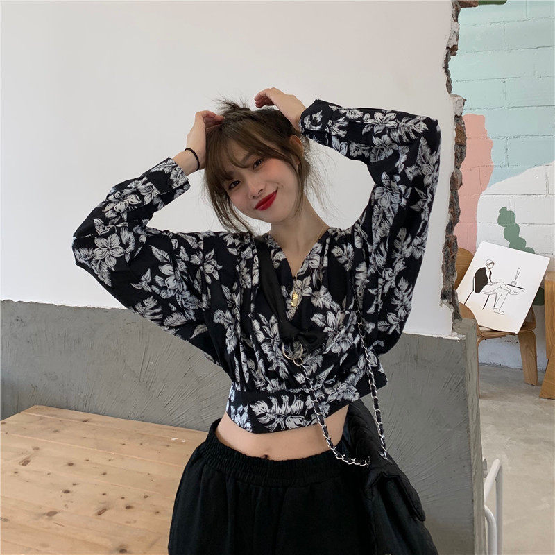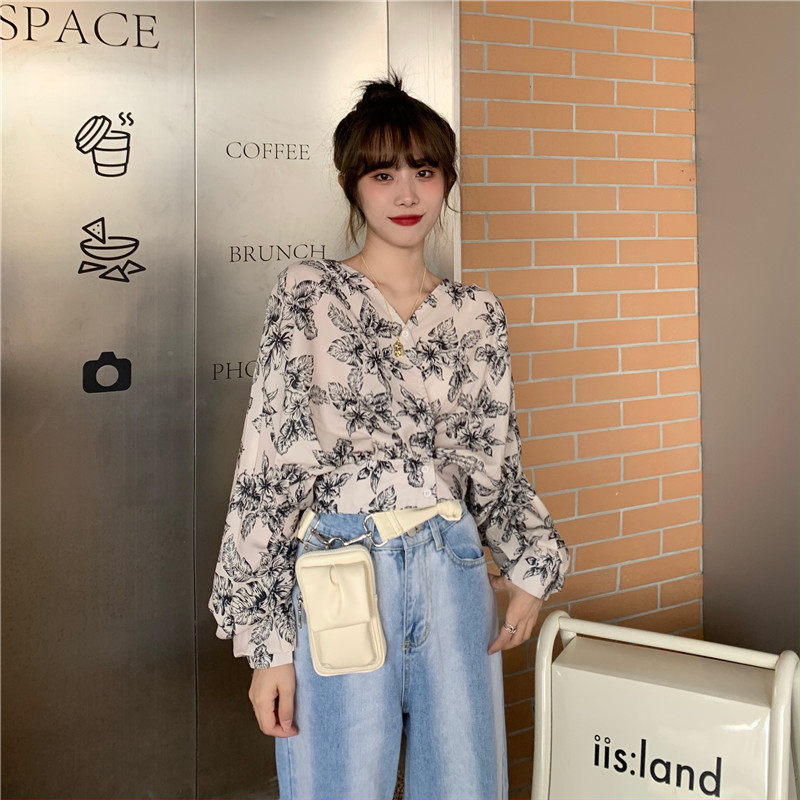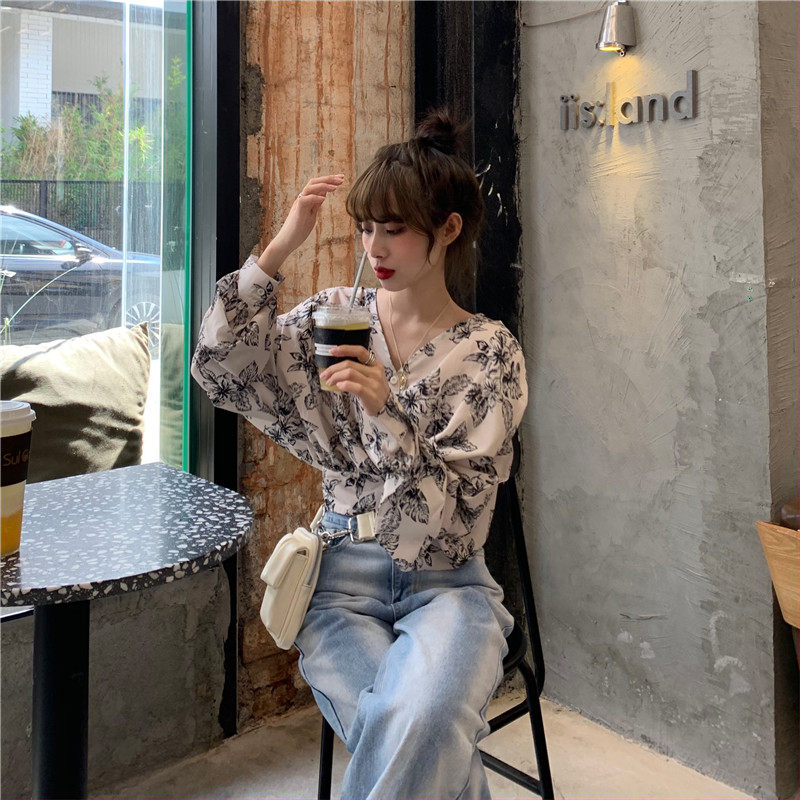 Женский Повседневный Топ с цветочным принтом, рубашка, Модный женский осенний Топ с длинным рукавом и V-образным вырезом, Лидер продаж, Женская туника, короткая блузка, новинка 2020
