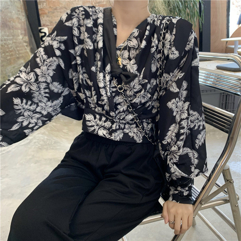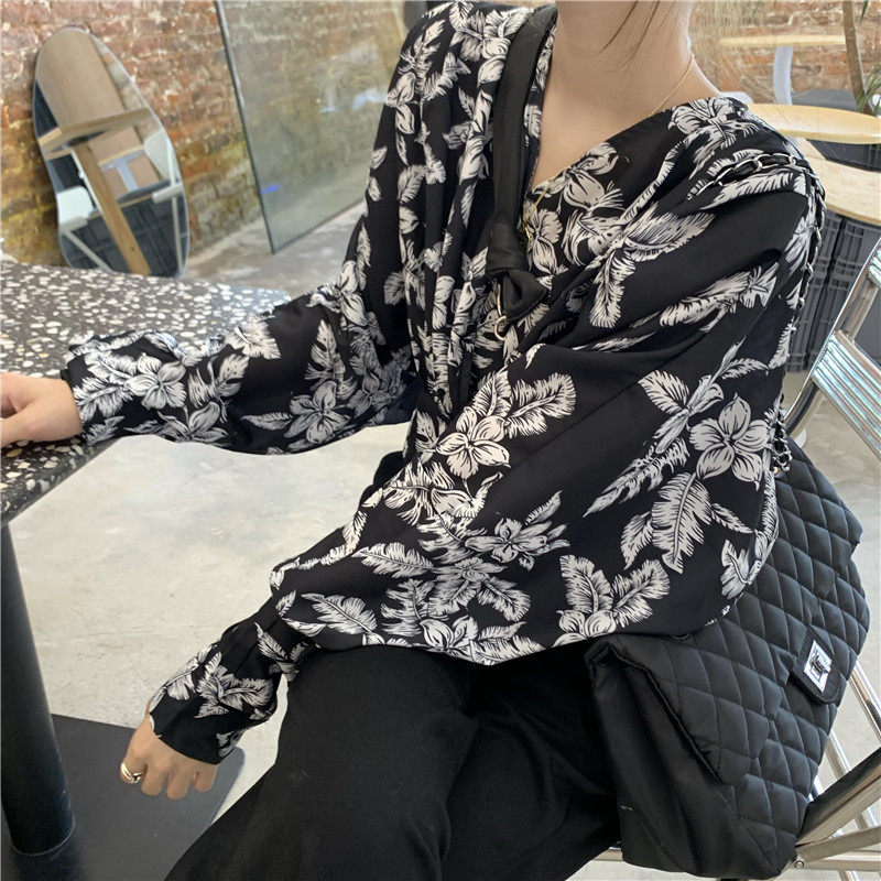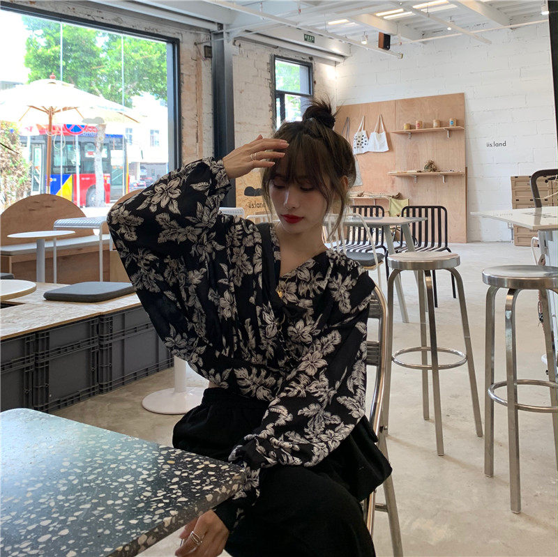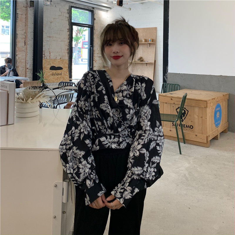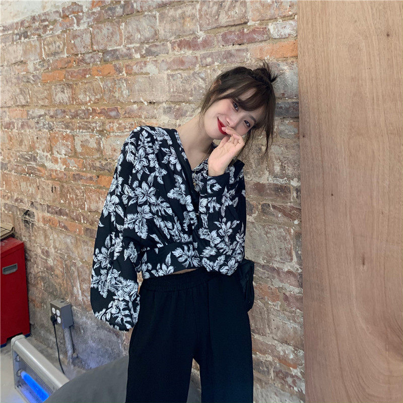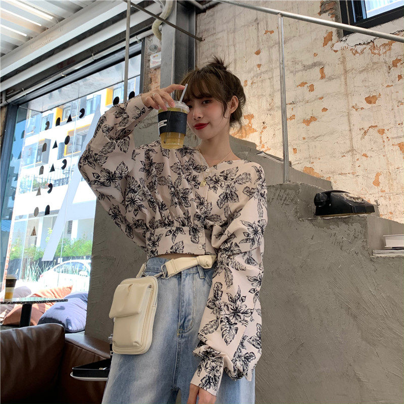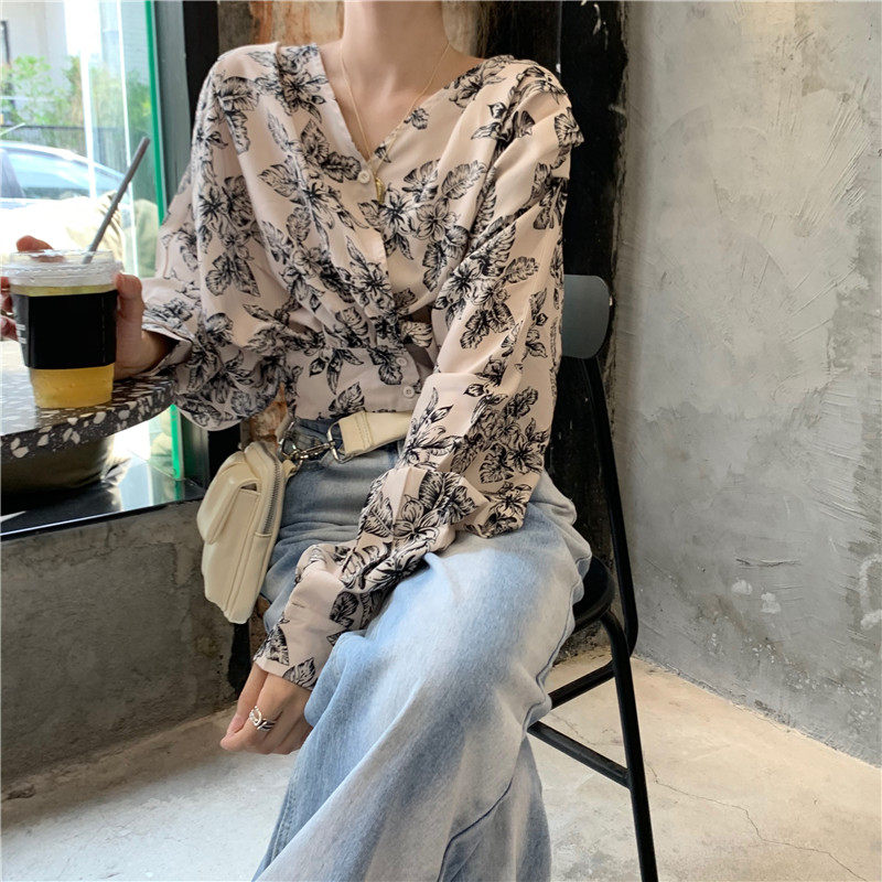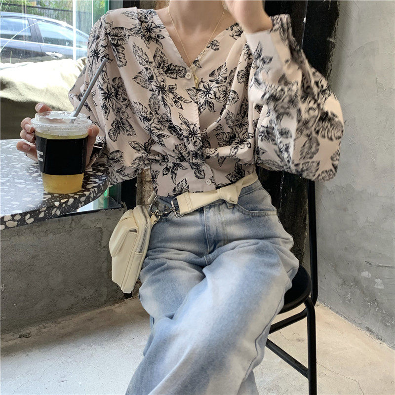 Женский Повседневный Топ с цветочным принтом, рубашка, Модный женский осенний Топ с длинным рукавом и V-образным вырезом, Лидер продаж, Женская туника, короткая блузка, новинка 2020