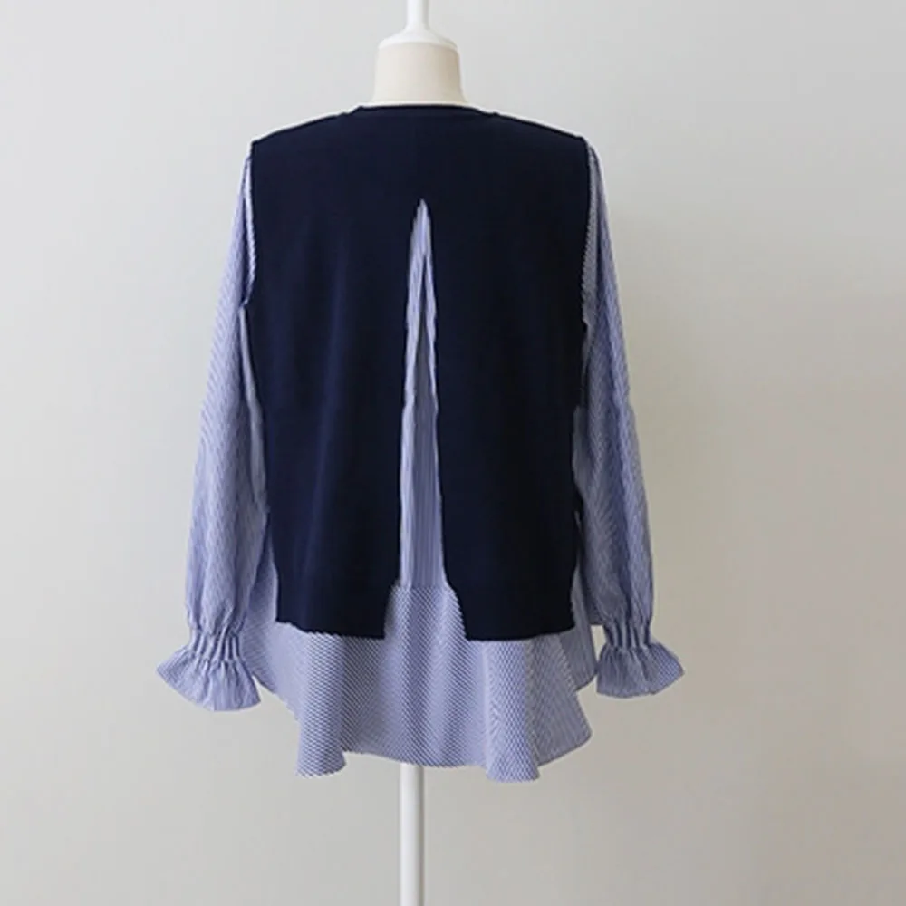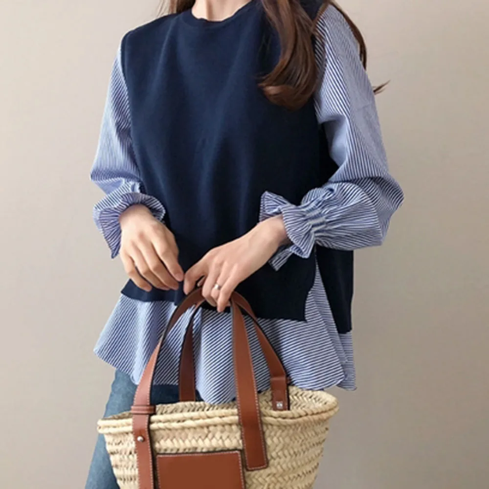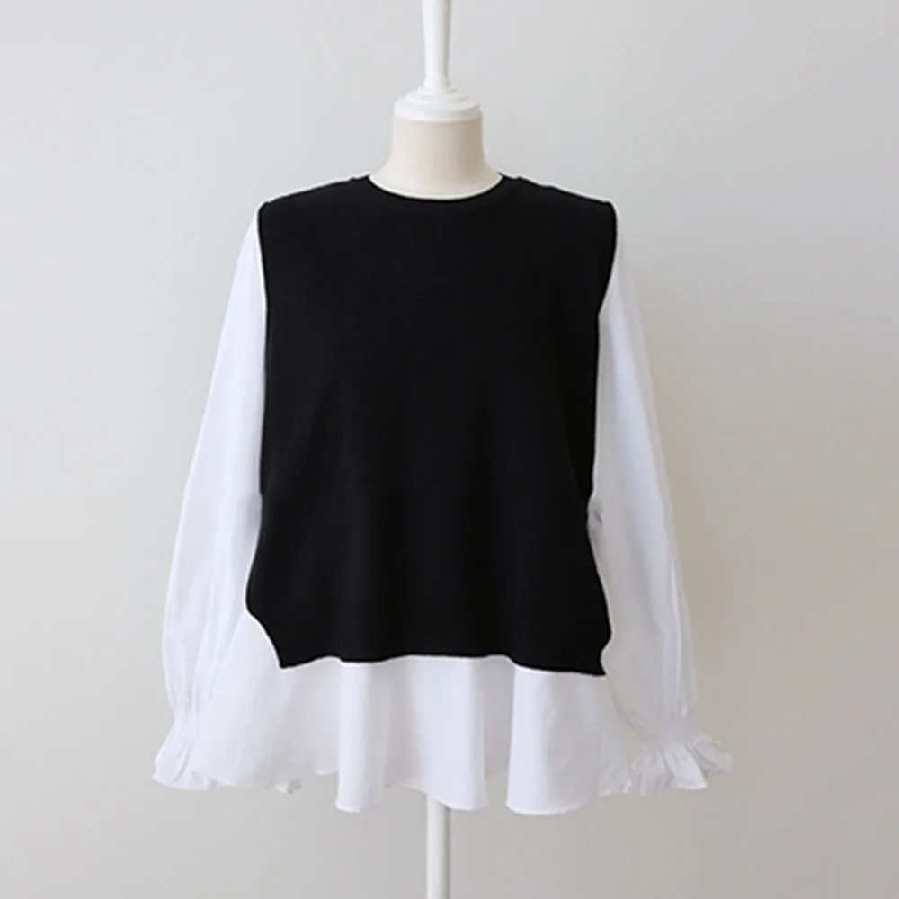 Корейская футболка, весенняя одежда, винтажная черная белая блузка, элегантная Офисная Женская блузка с воротником-стойкой, большие женские топы с завязками на спине, повседневная