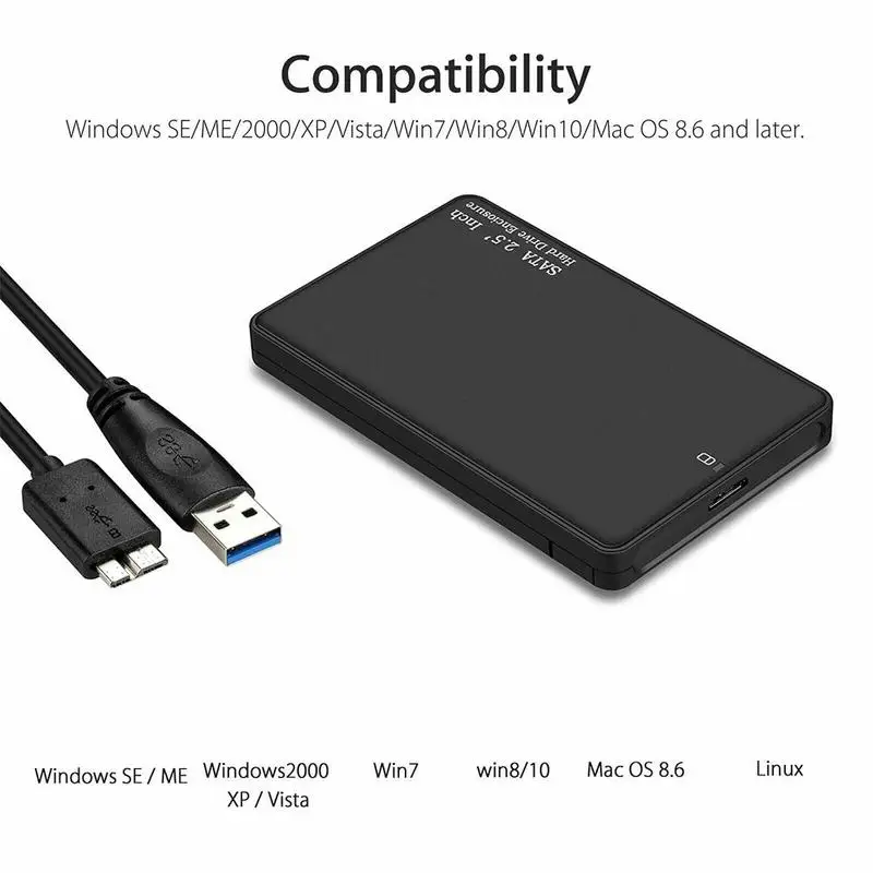 2,5 "USB 3,0 внешний жесткий диск SATA HD корпус/Чехол, Совместимость с SATA HDD/SSD в 9,5 мм