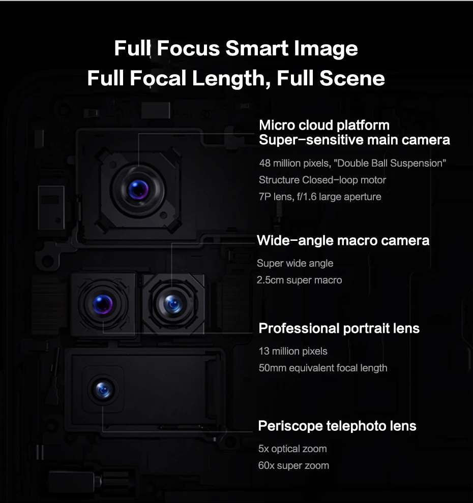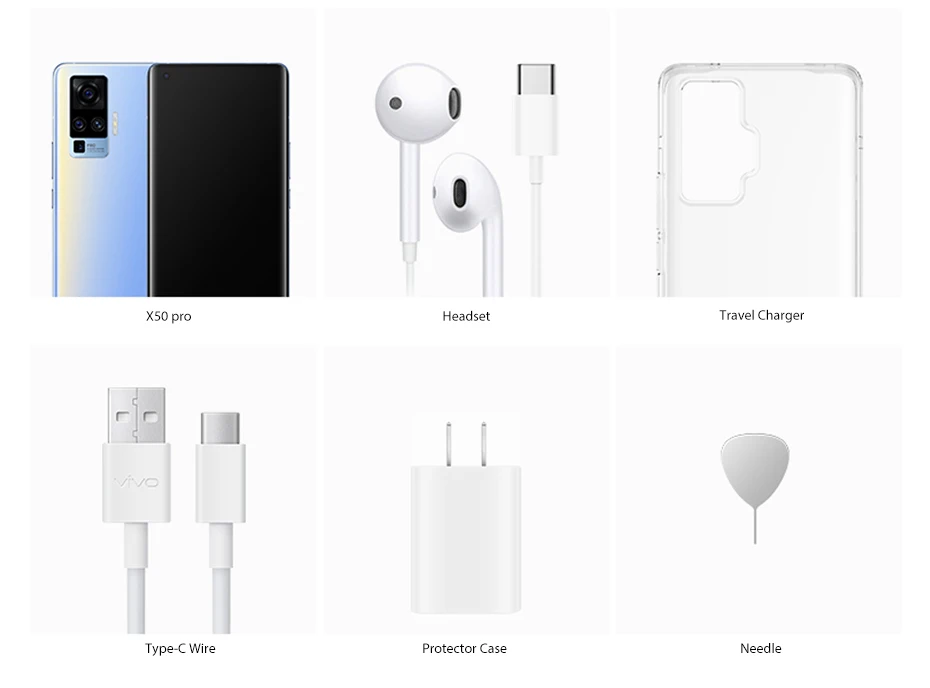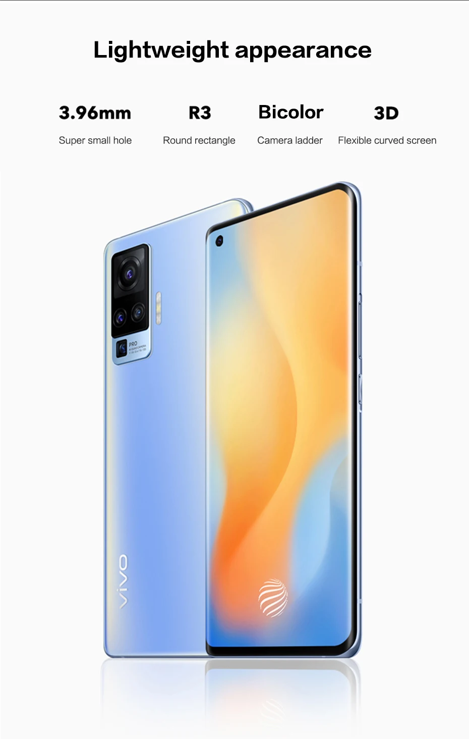 Модель: vivo X50 Pro (двухрежимный 5G Full Netcom) Процессор: Snapdragon 765G Память: 8 ГБ + 128 ГБ/8 ГБ + 256 ГБ Камера: 48 МП (основная фотография) + 13 МП (портретная линза) + 8 МП (телеобъектив) + 8 МП (макрообъектив) Quad Camera Фронтальная камера 32 МП Аккумулятор: 4315 мАч большой аккумулятор + 33 Вт тире зарядка Экран: 6,56 ''гибкий экран, AMOLED Другие: двойной режим ожидания Поддержка Google Play Поддержка NFC Поддержка 60x Zoom Сеть 2G GSM: 850/900/1800/1900 CDMA: BC0 3G WCDMA: B1/B2/B4/B5/B8 CDMA2000: BC0 TD-SCDMA: B34/B39 4G TDD-LTE: B34/B38/B39/B40/B41 FDD-LTE: B1/B2/B3/B4/B5/B7/B8/B12/B17 4G +: 1C/3C/39C/40C/41C/1A-3A/39A-41A/8A-41A/3A-41A/39A-41C/39C-41A/1A-3C/3A-41C/8A-41C/40D/41D 5G: n1/n3/n41/n77/n78/n79 (Поддержка частотного диапазона n1 / n3 зависит от макета сети оператора. После официального открытия, он будет протолкнут через метод обновления OTA)