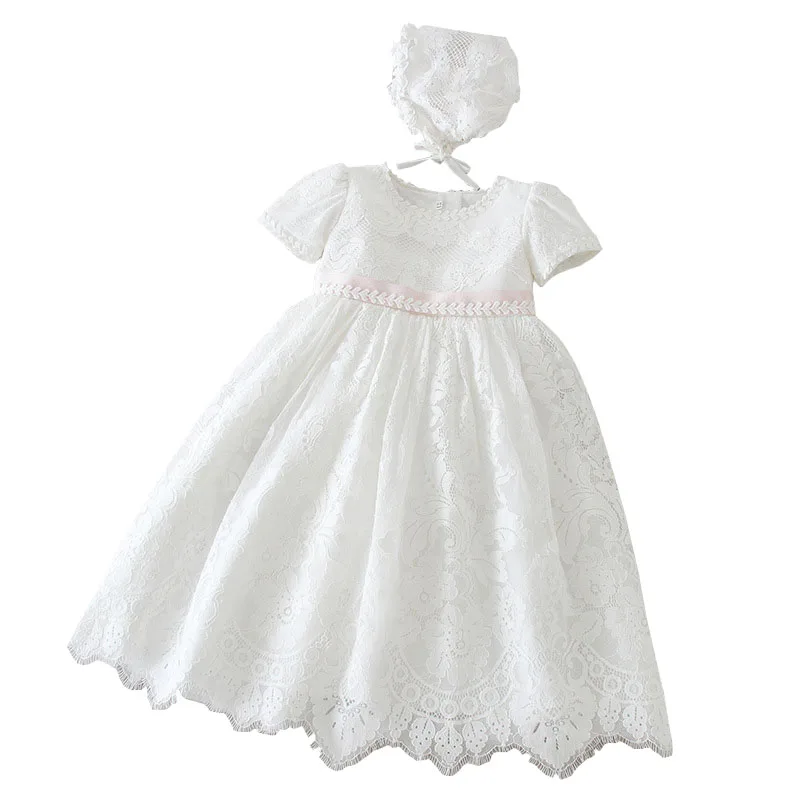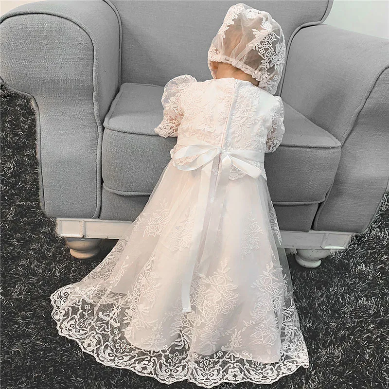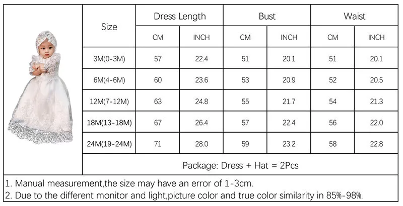 Комплект из 2 предметов для новорожденных девочек; С оборками свитер с вышивкой Винтаж, платье для крещения ♀Материал: смесь хлопка, полиэстер ♀Посылка: 1 шт. платье для крещения с короткими рукавами, 1 шт. Регулируемая шляпа ♀Размер: 3M/6M/12M/18M/24 M, подходит для детей 0-24 месяцев, младенцев ♀Стиль платья: милое платье принцессы ♀Длина платья: длина в пол